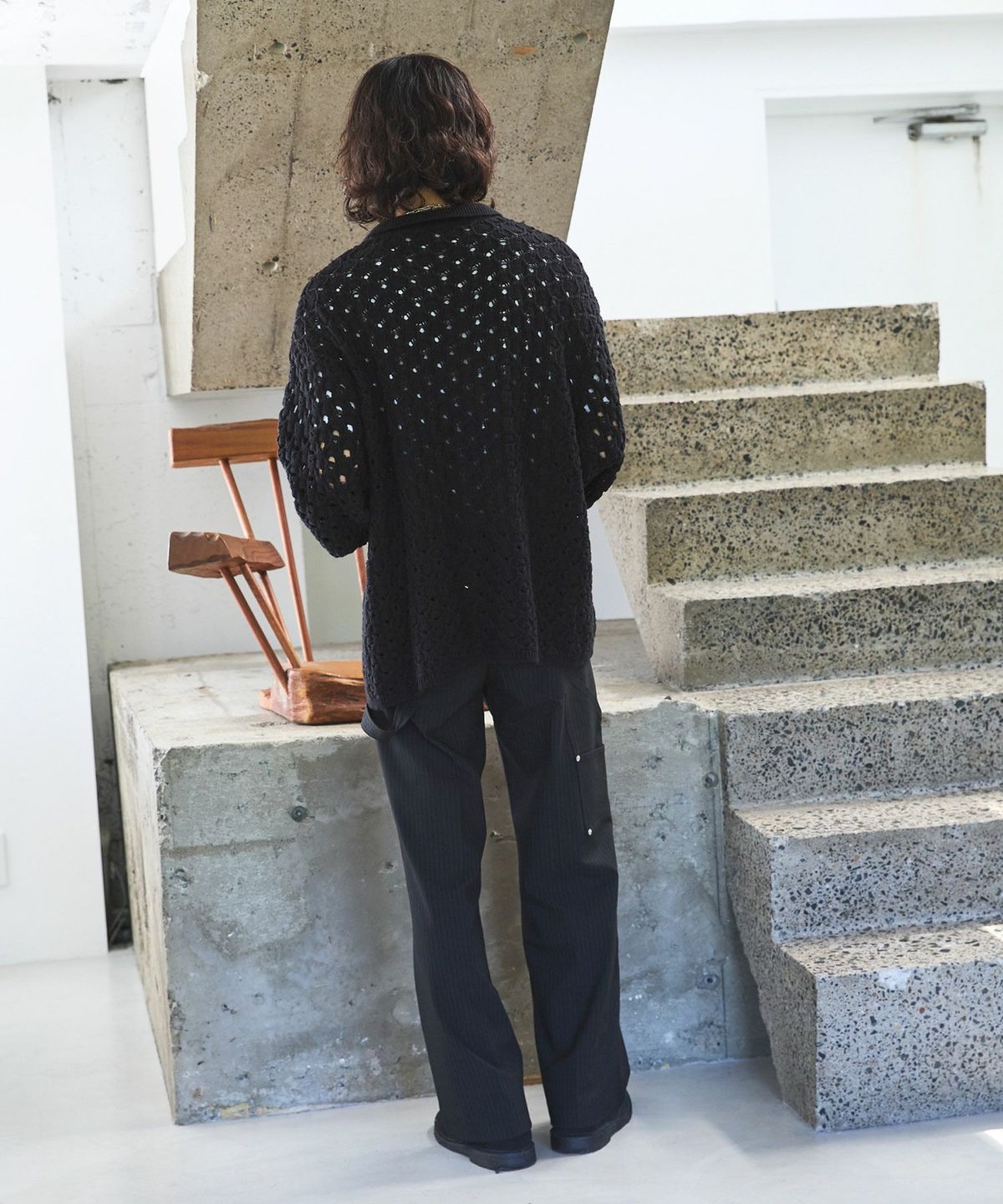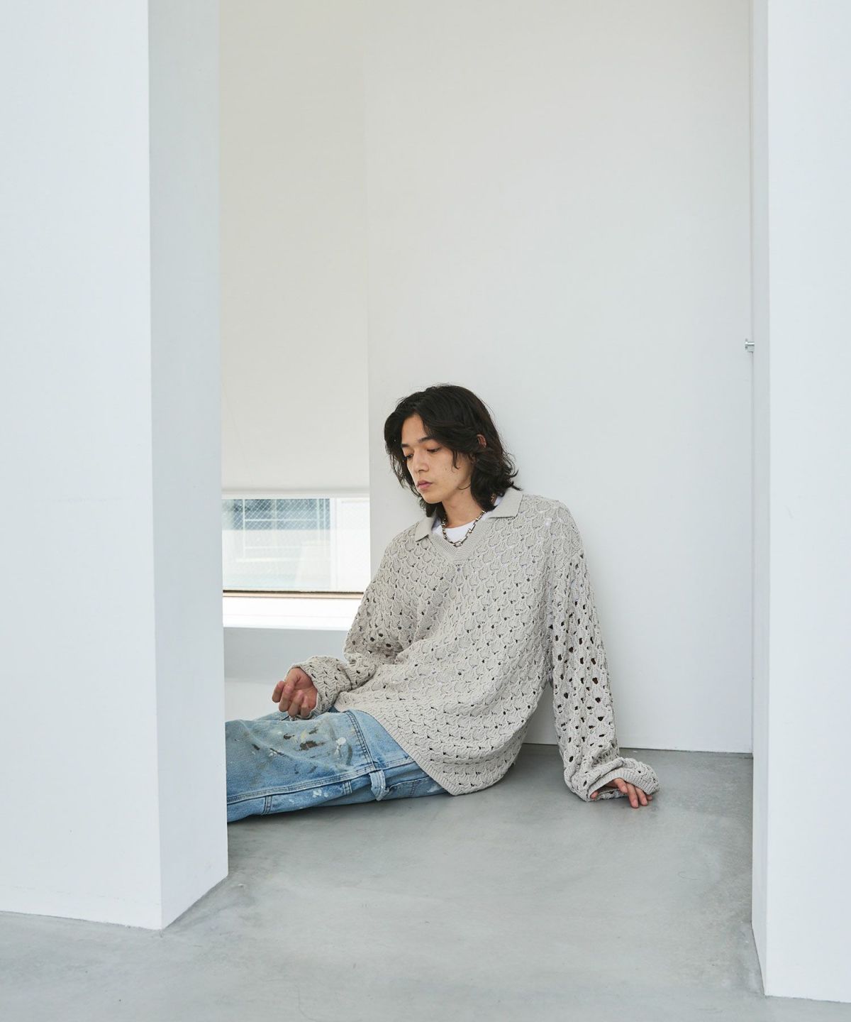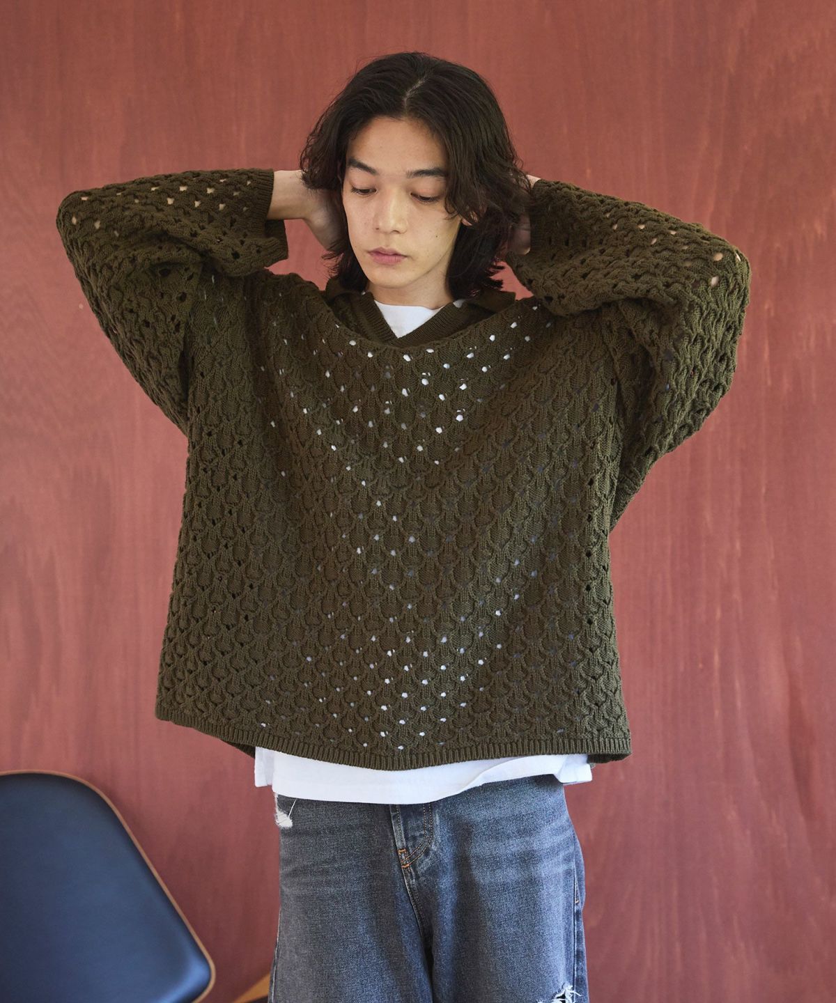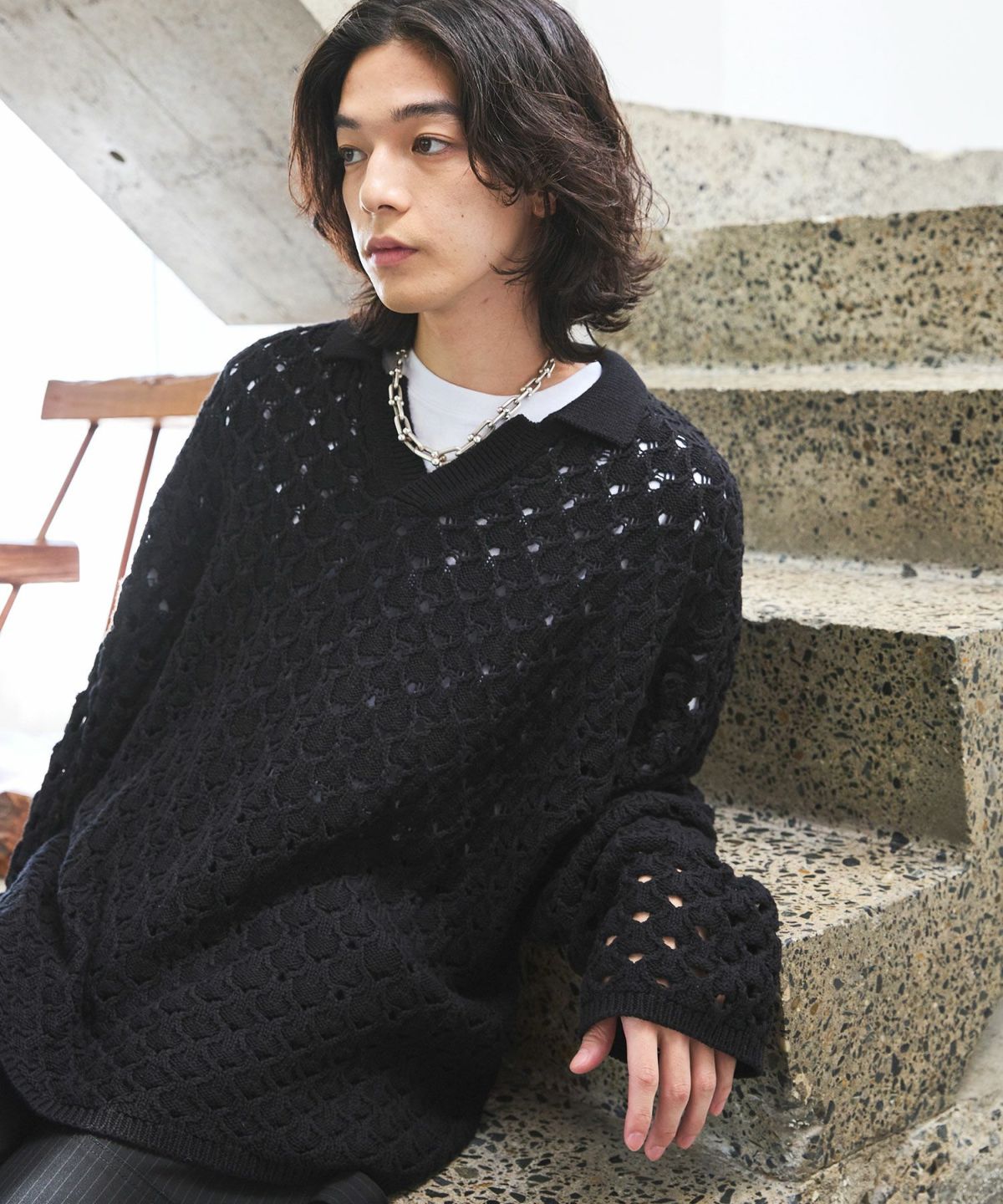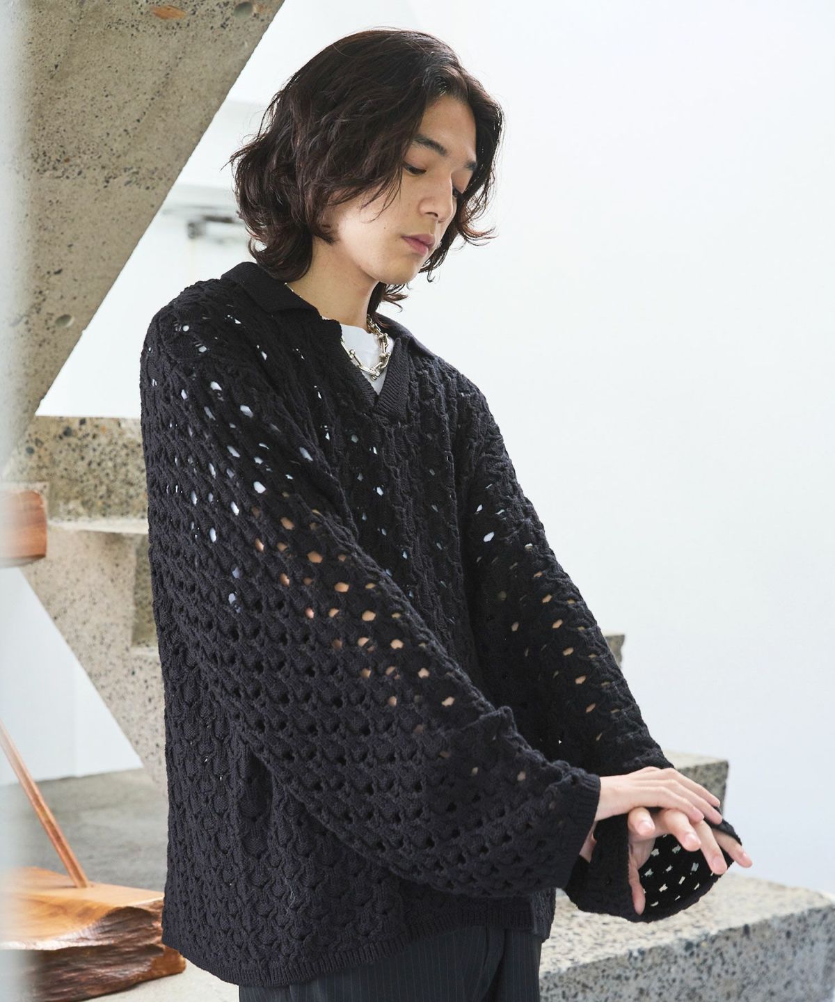 立体感のある編地に、程良いメッシュ感のあるオリジナルの編地で表現したこちらのポロニット。