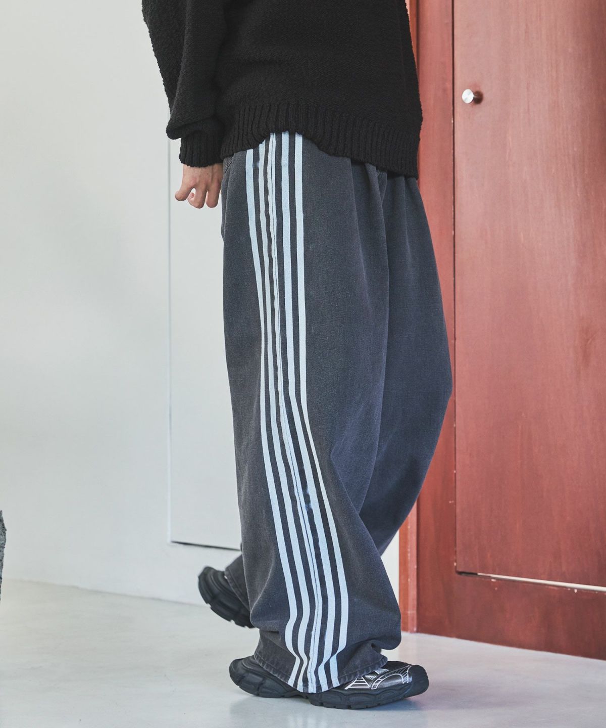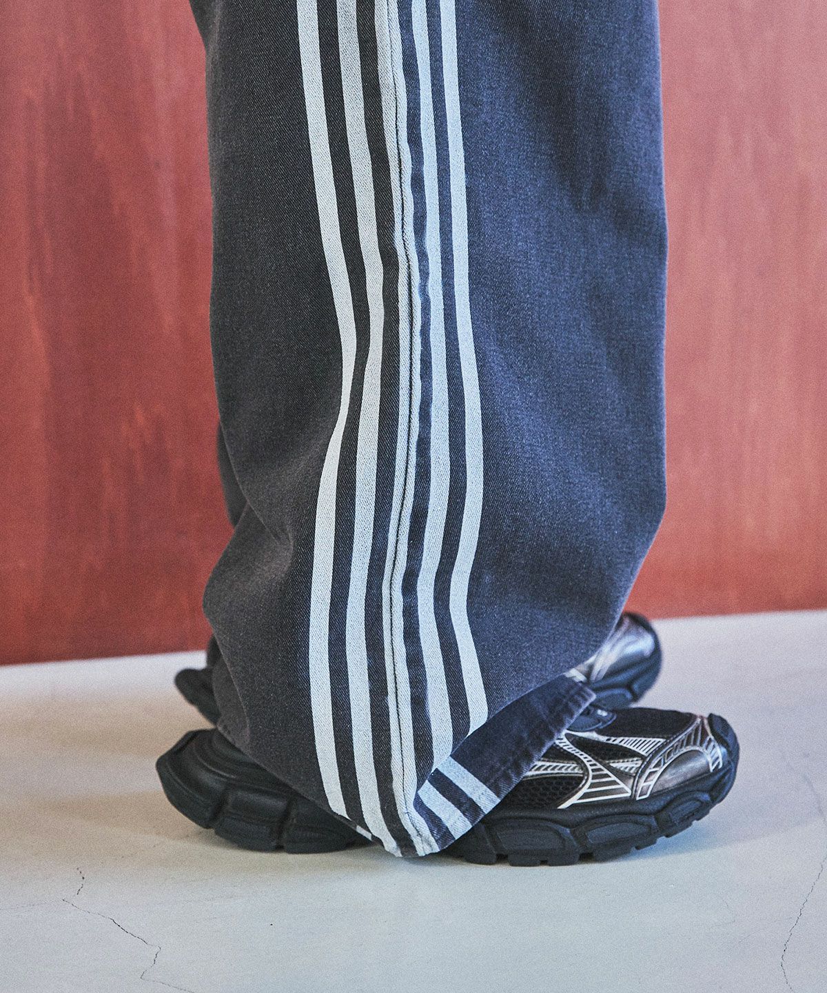 国内外で人気が高まっているDISCOVEREDの人気アイテムであるトラックパンツをトレンドのデニムアイテムに落とし込んだ特別な1本。