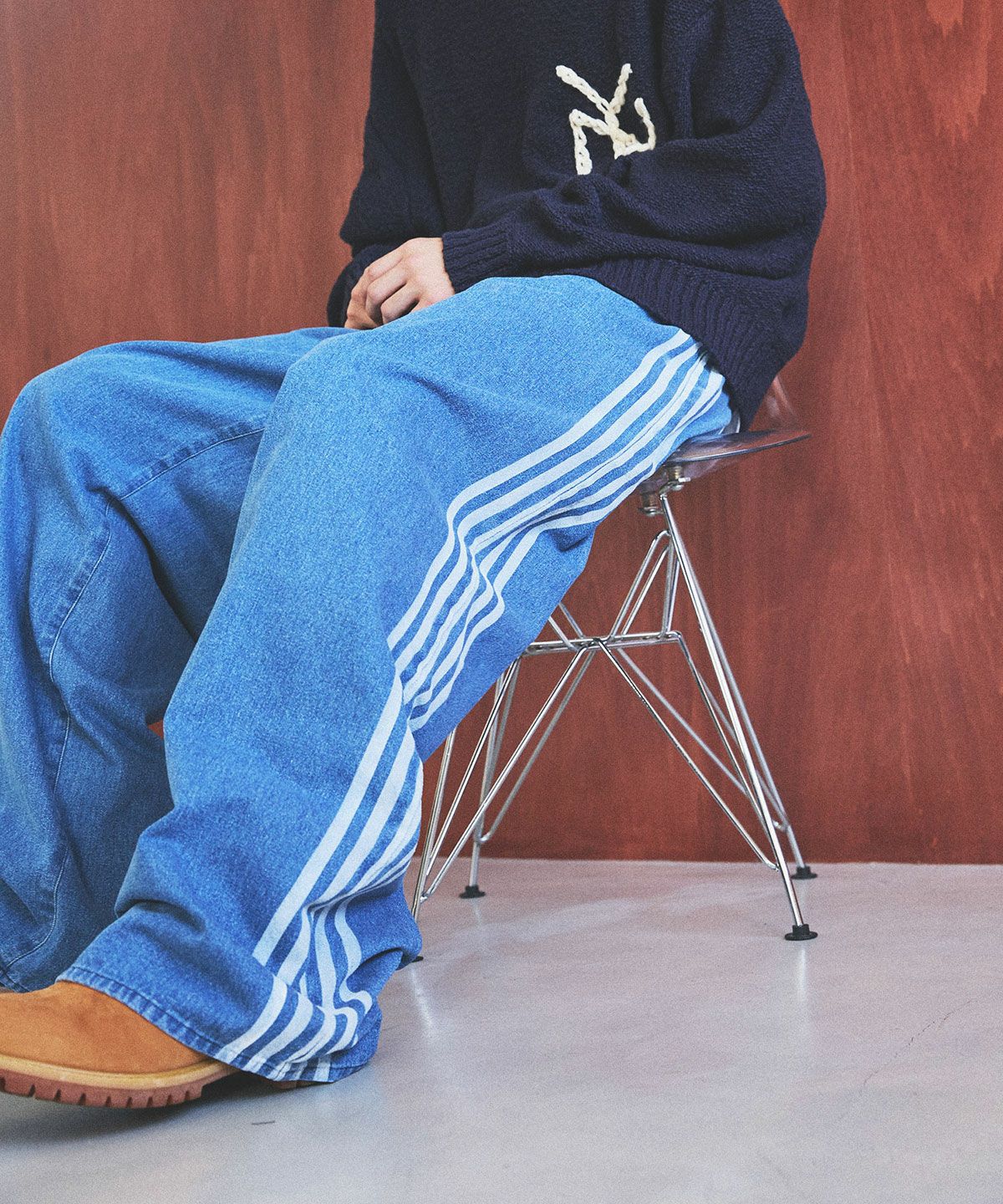 今回のデザインはトラックパンツをデニムにミックスした1本。