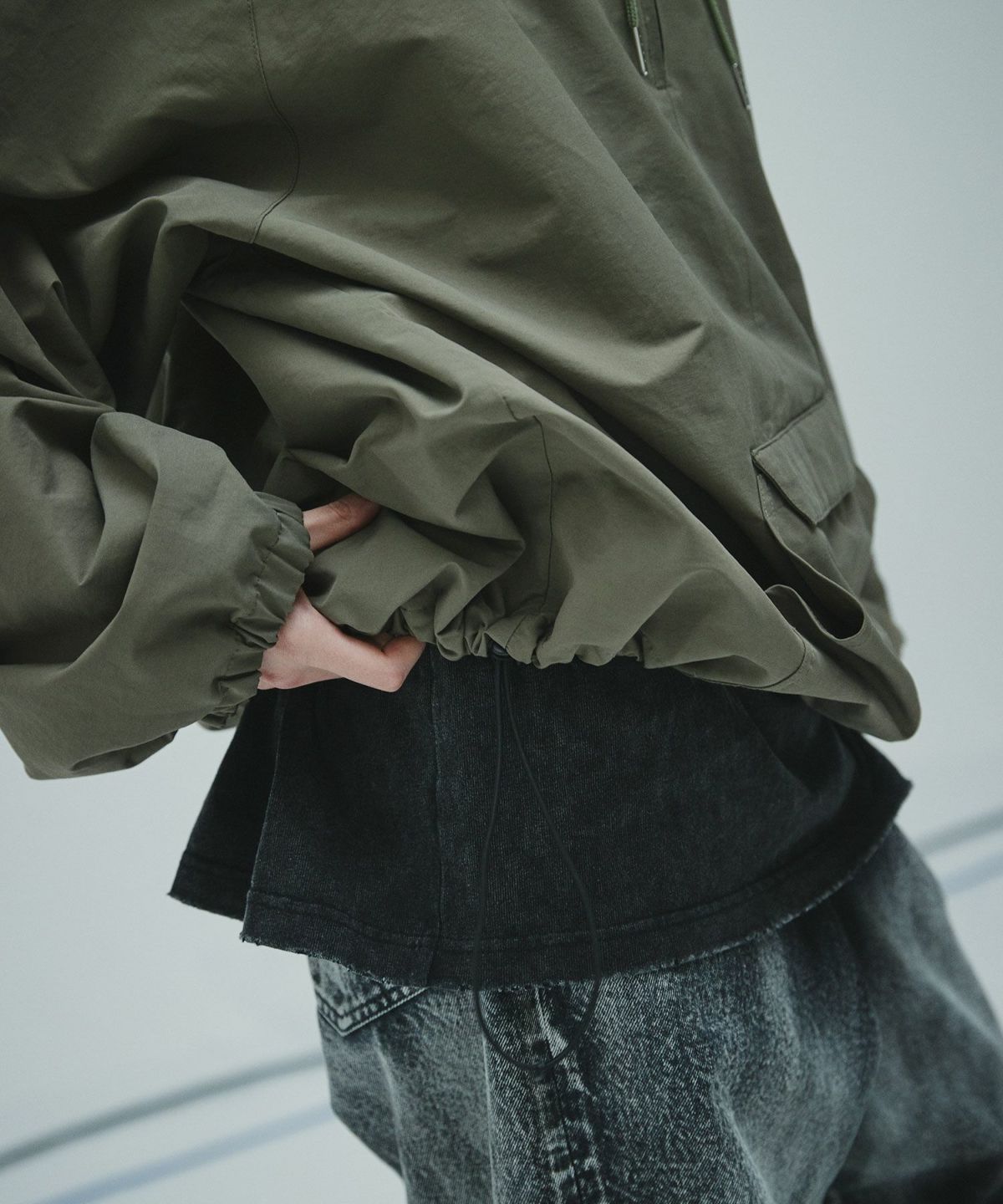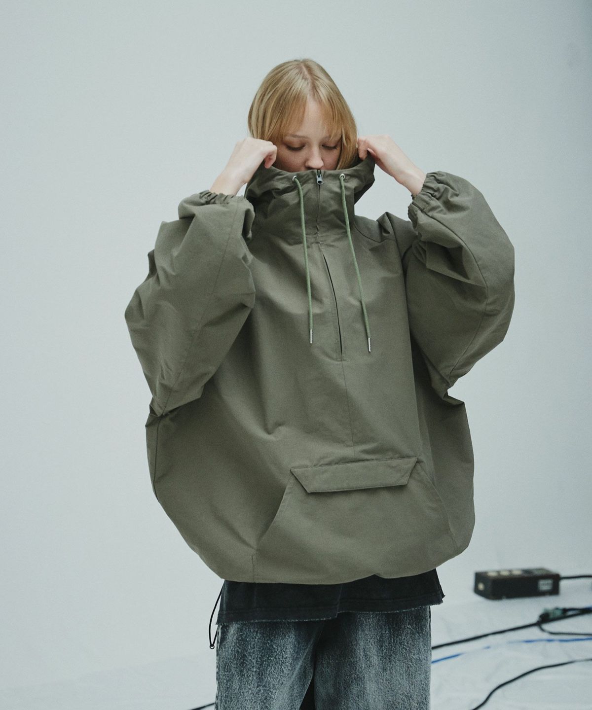 身幅を広くとり、着丈をやや短めにしたアノラックジャケットになっており、