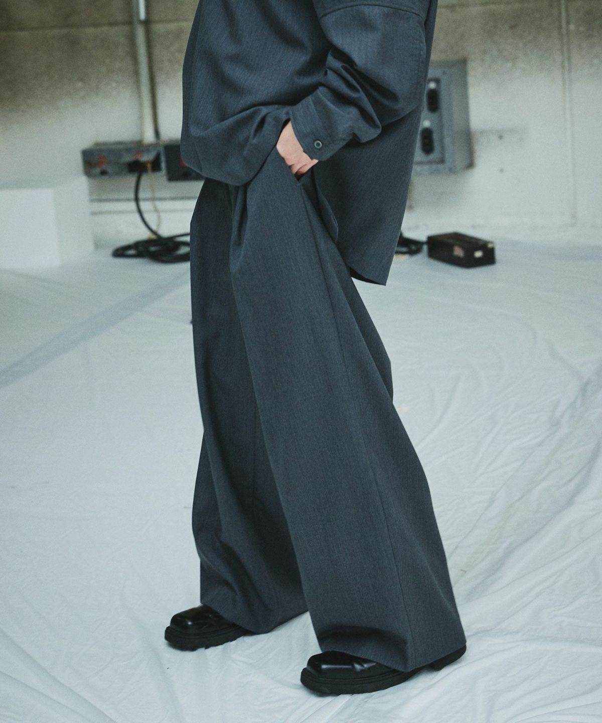 今回リリースのスラックスは市場で流通してるワイドパンツでは物足りない方に向けた、メリハリあるボリューム感あるワイドパンツにデザイン。