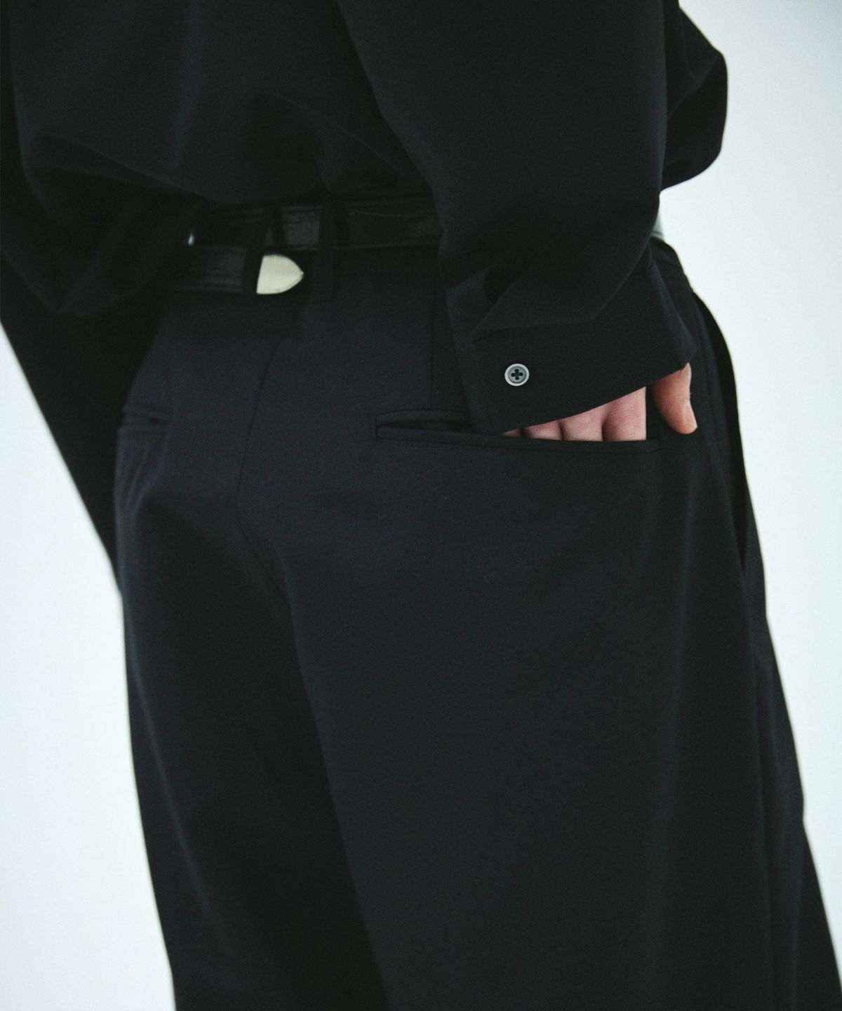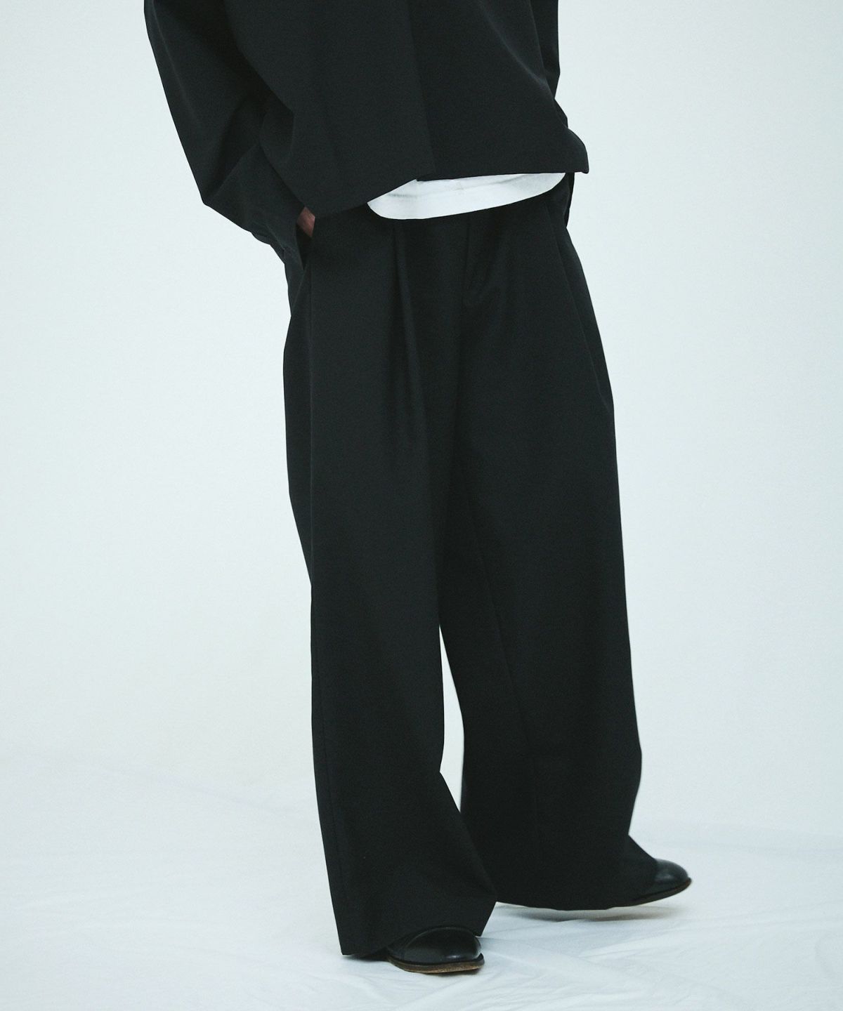 よりワイドなシルエットを体感出来、腰まわりのフロントには深く入った1タック仕様。