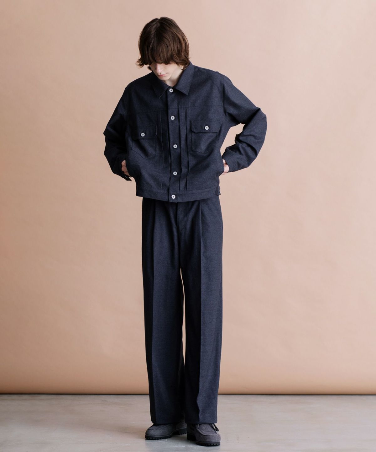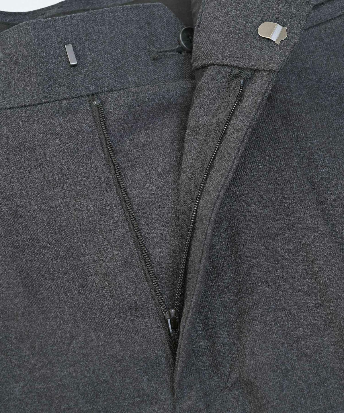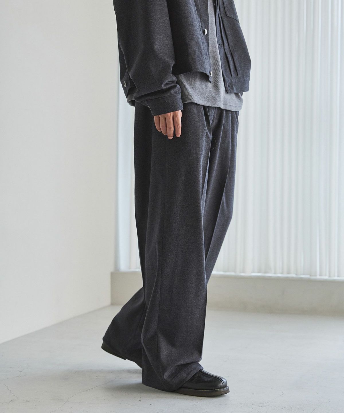 ウール感のあるポリエステル生地を使用したバギースラックス。
