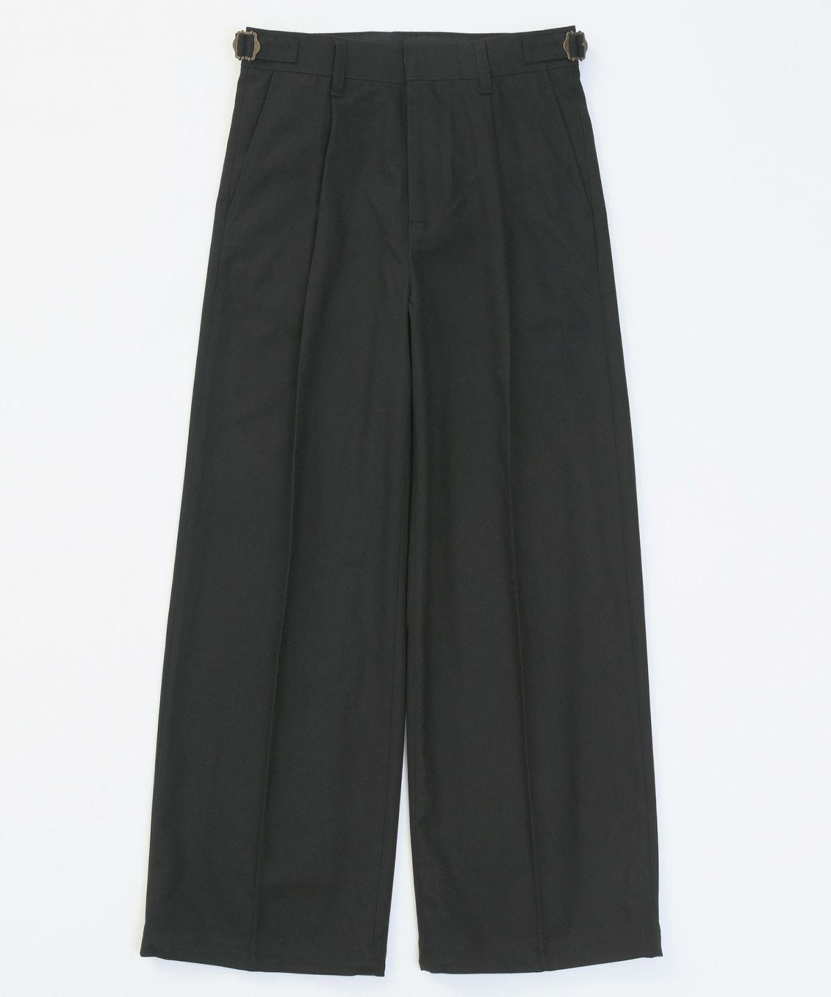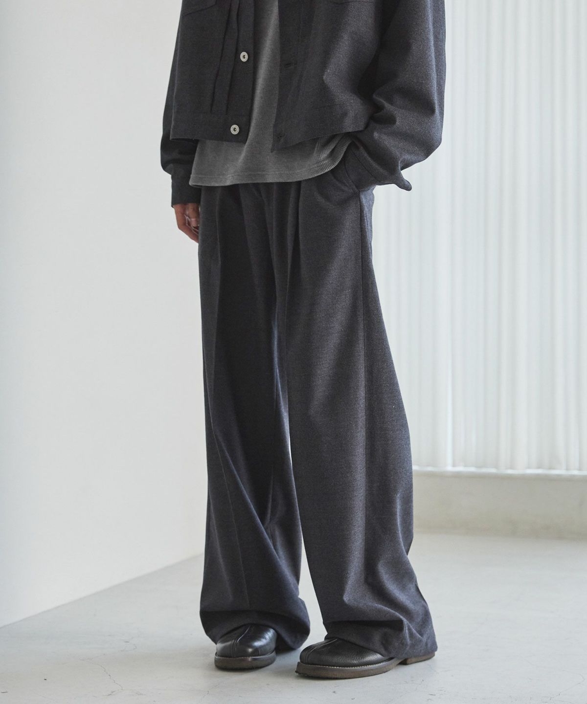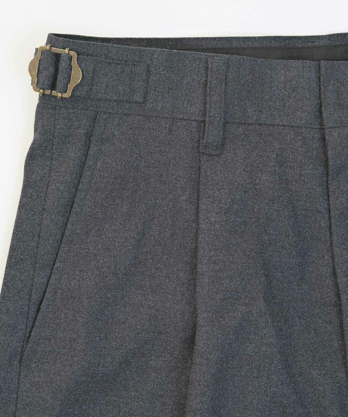 ウール感のあるポリエステル生地を使用したバギースラックス。