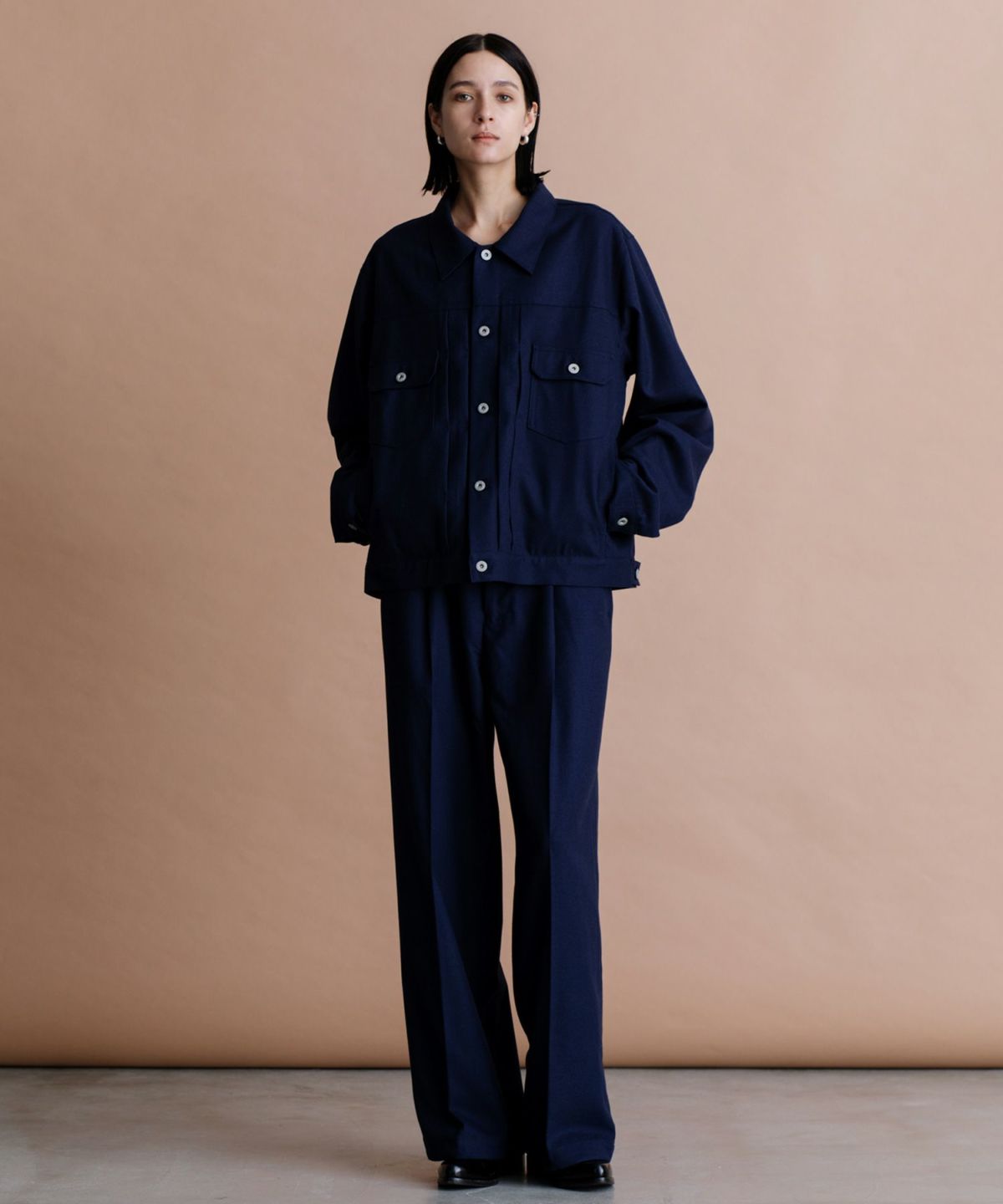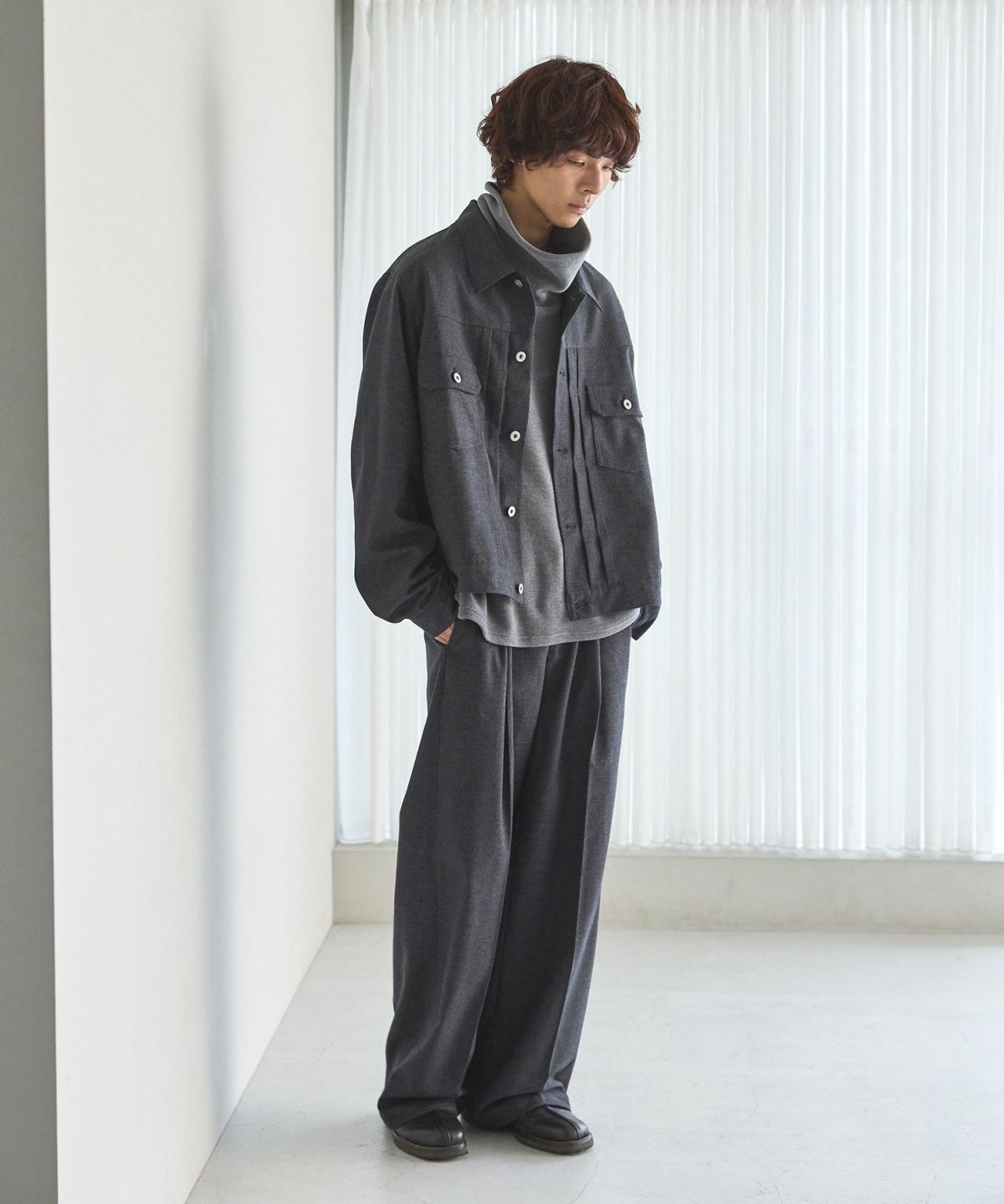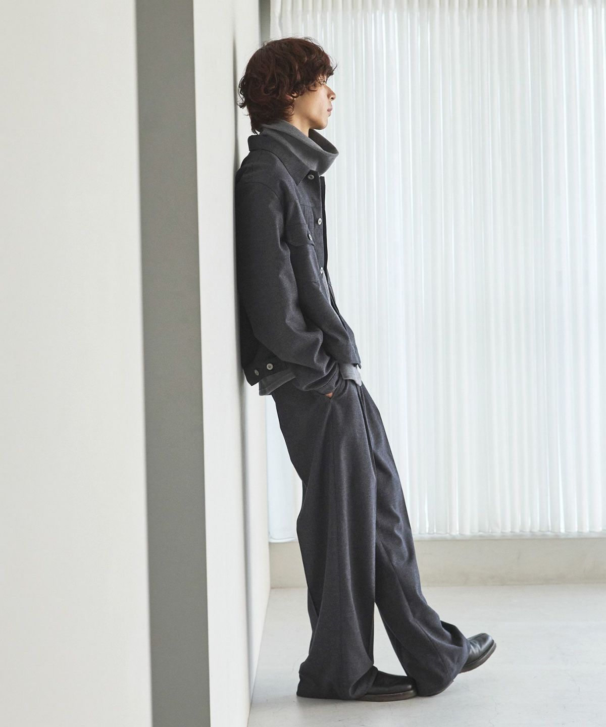 表面に起毛感があり、落ち感のある素材を選び、ワイドシルエットでありながらも上品に仕上げたこちらのジャケットは、