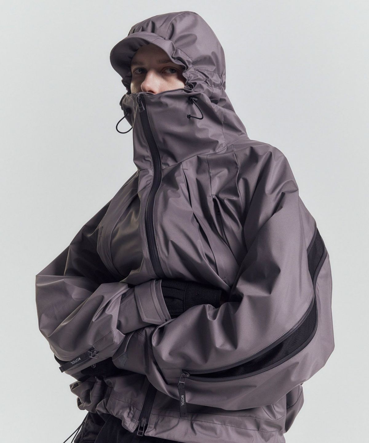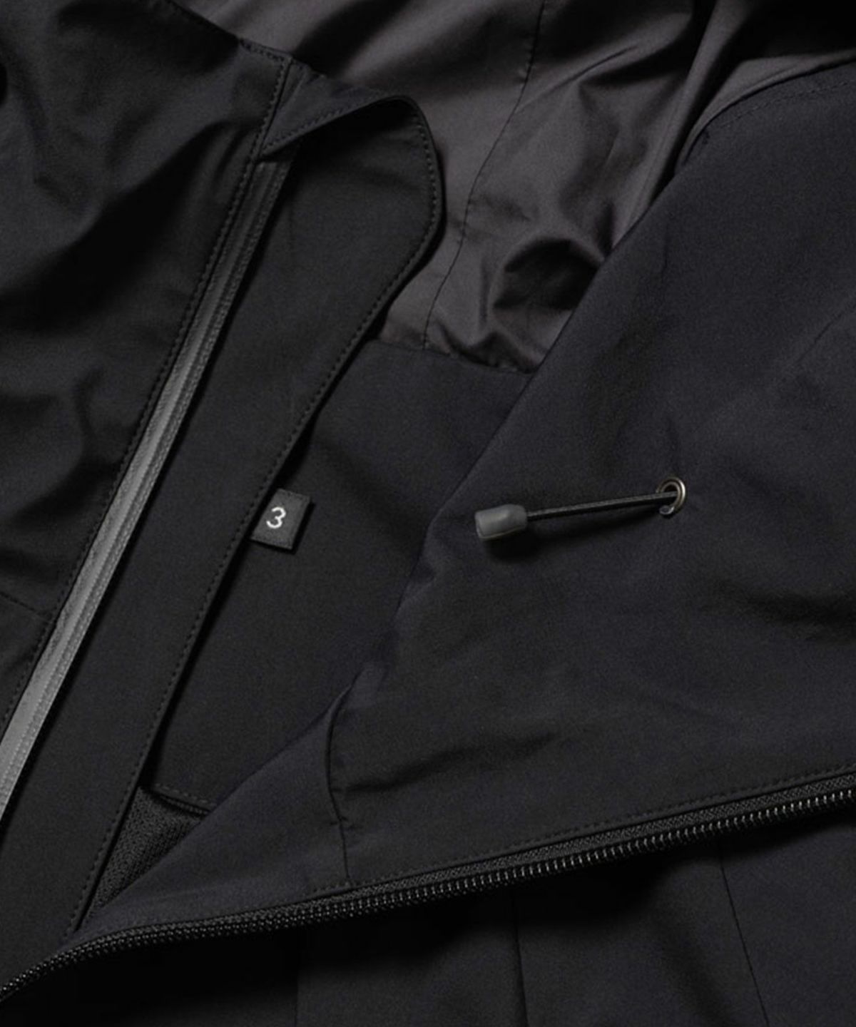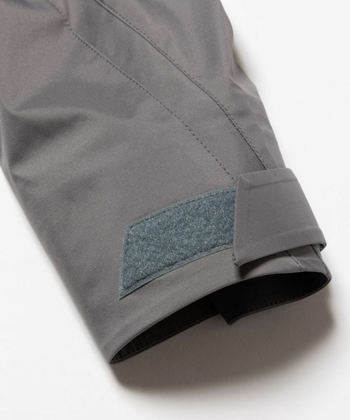 透湿防水機能に優れたナイロンを使用したシェルパーカ。 背中のジップは開閉することでシルエットを変化させるだけでなく、内素材にメッシュを配したことでベンチレーションとしての機能も備えている。 フードはフィット感を高めるため、顔周りに二種類のドローコードを搭載。 フロントには合計6箇所のジップポケットを配しており、背面と同様にベンチレーションとしても機能する。 袖口はベルクロ、裾にはシルエットを調節するためのドローコードを採用。
