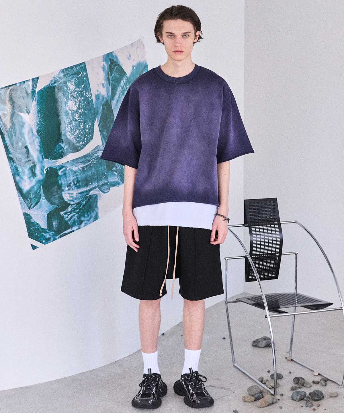 ハンドブリーチカットオフハーフスリーブTシャツ