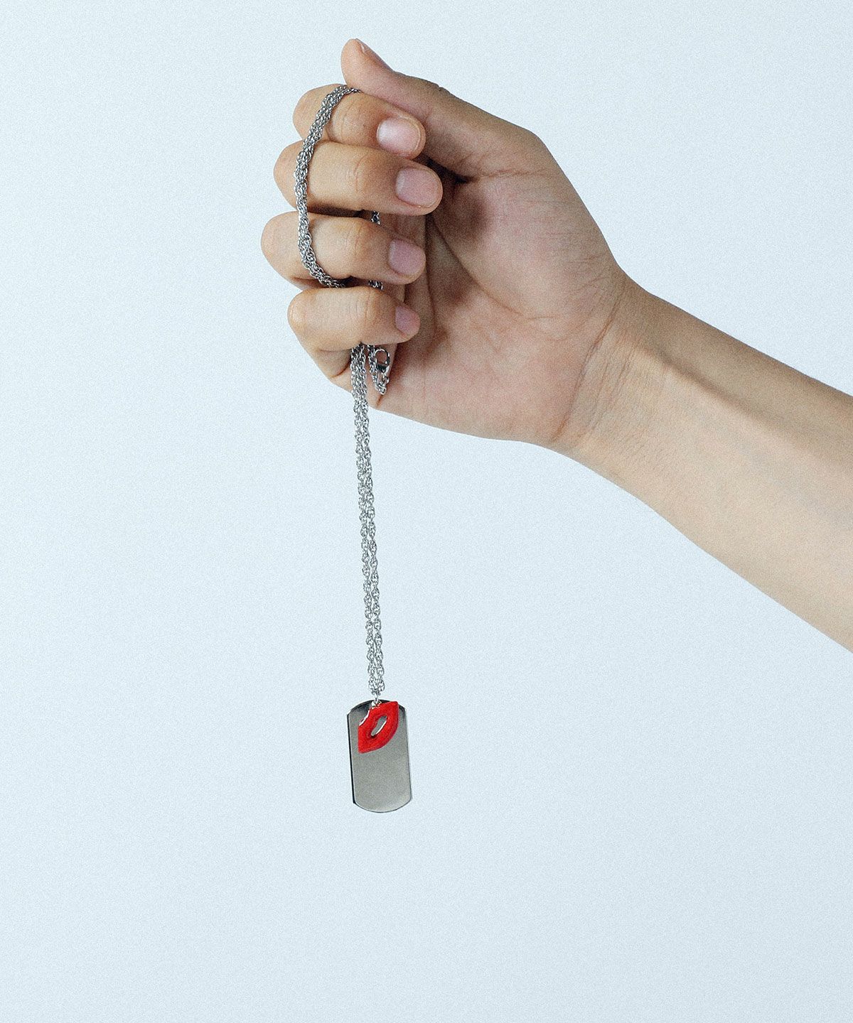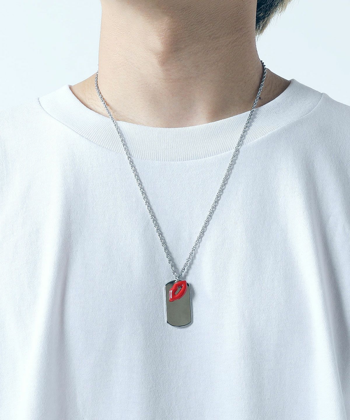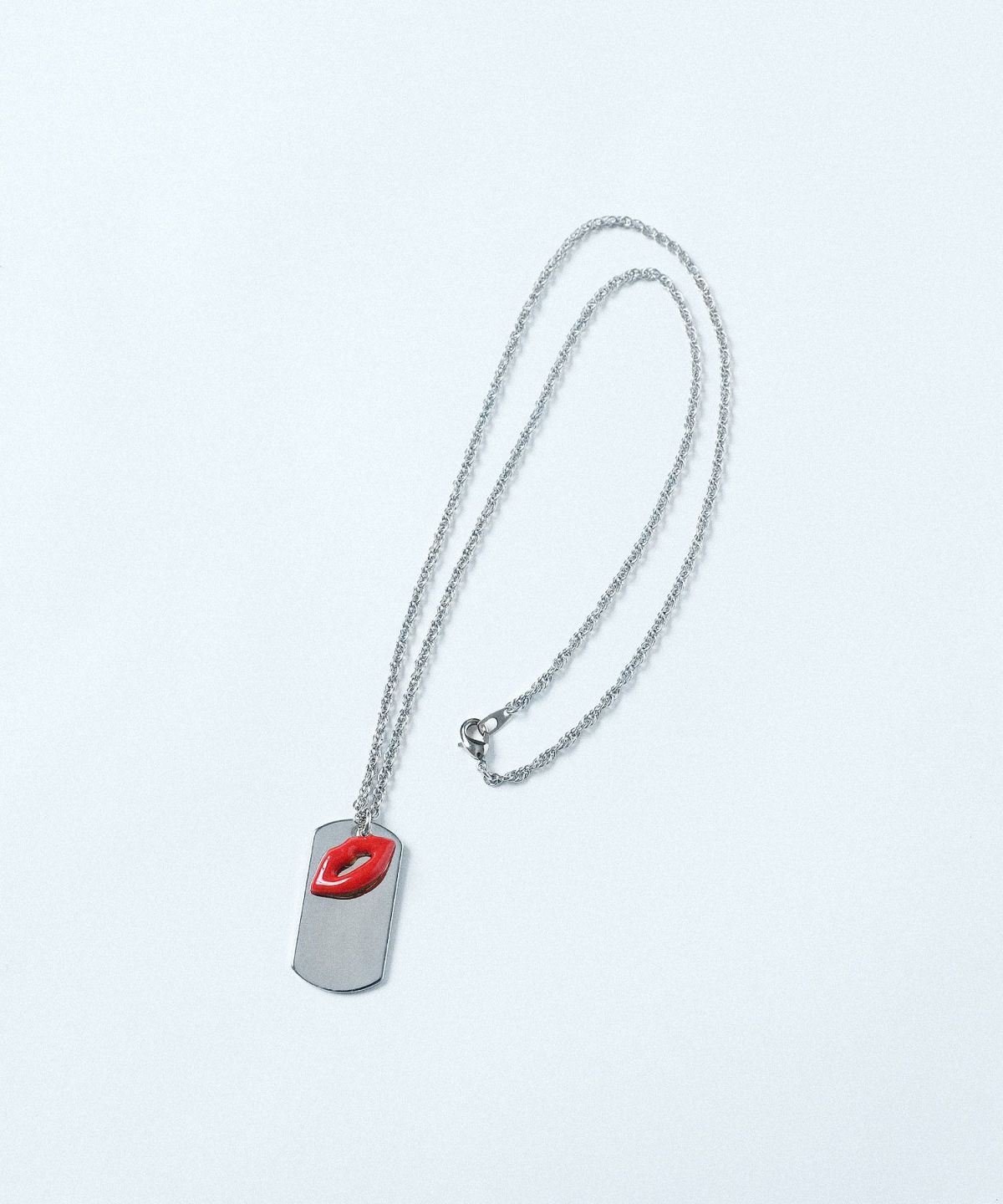 ドッグタグとキスマークを重ねたピースフルなデザインが特徴。