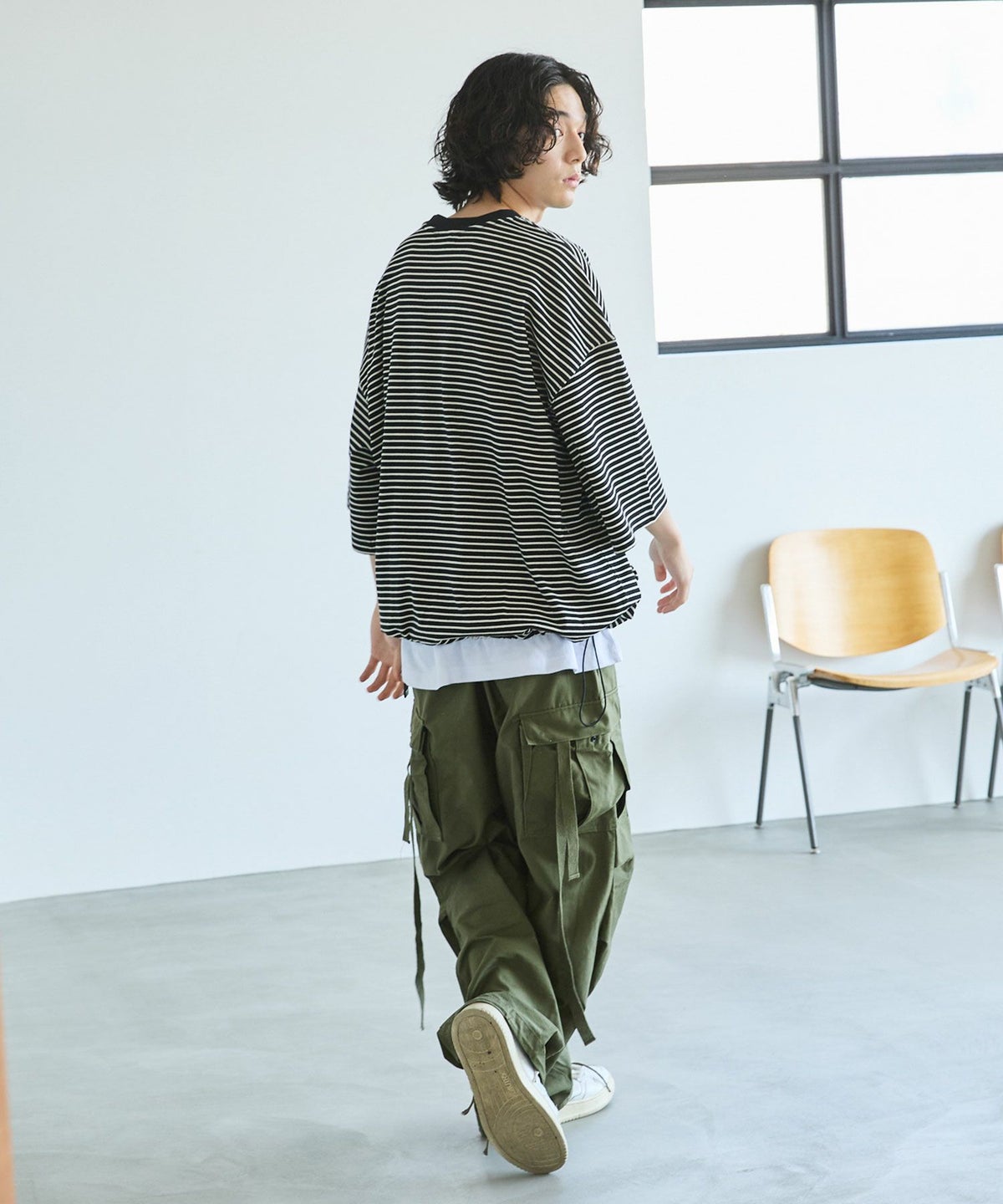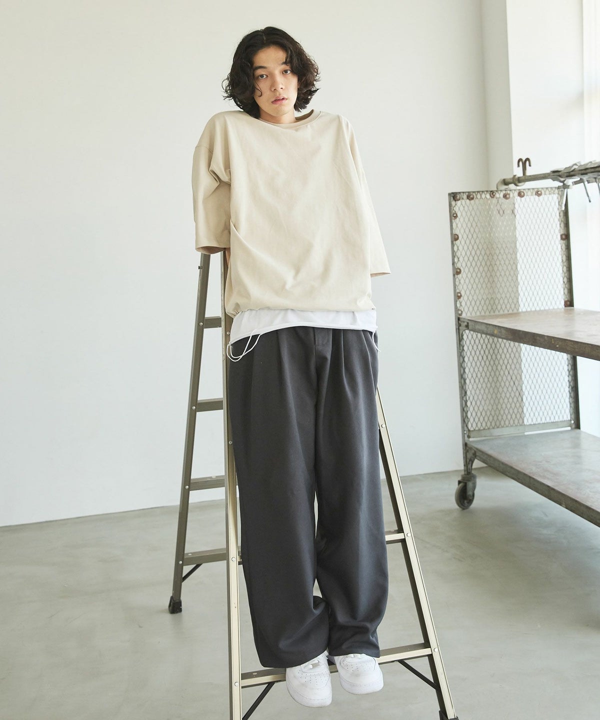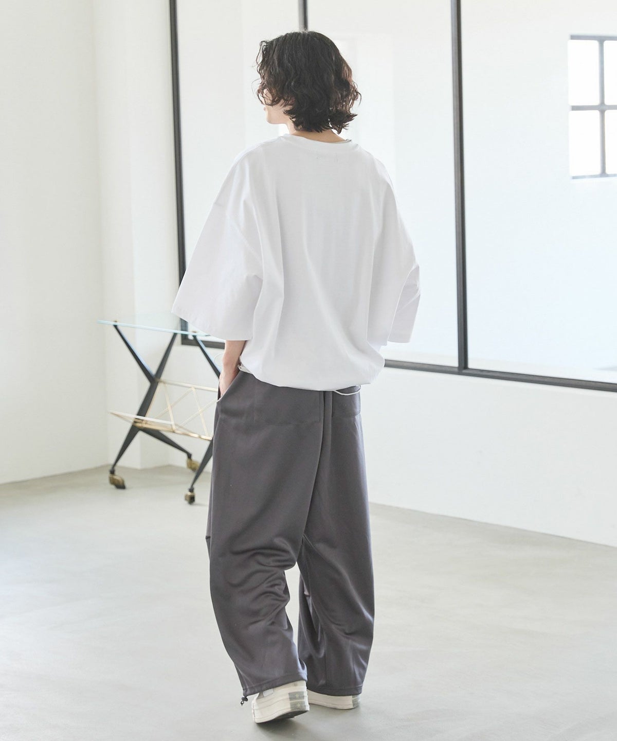 大胆にとったドロップショルダーシルエットで、まさに一枚で決まるカットソーです。