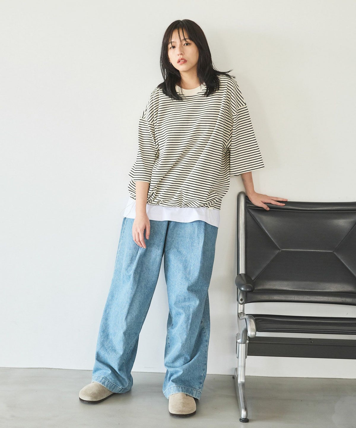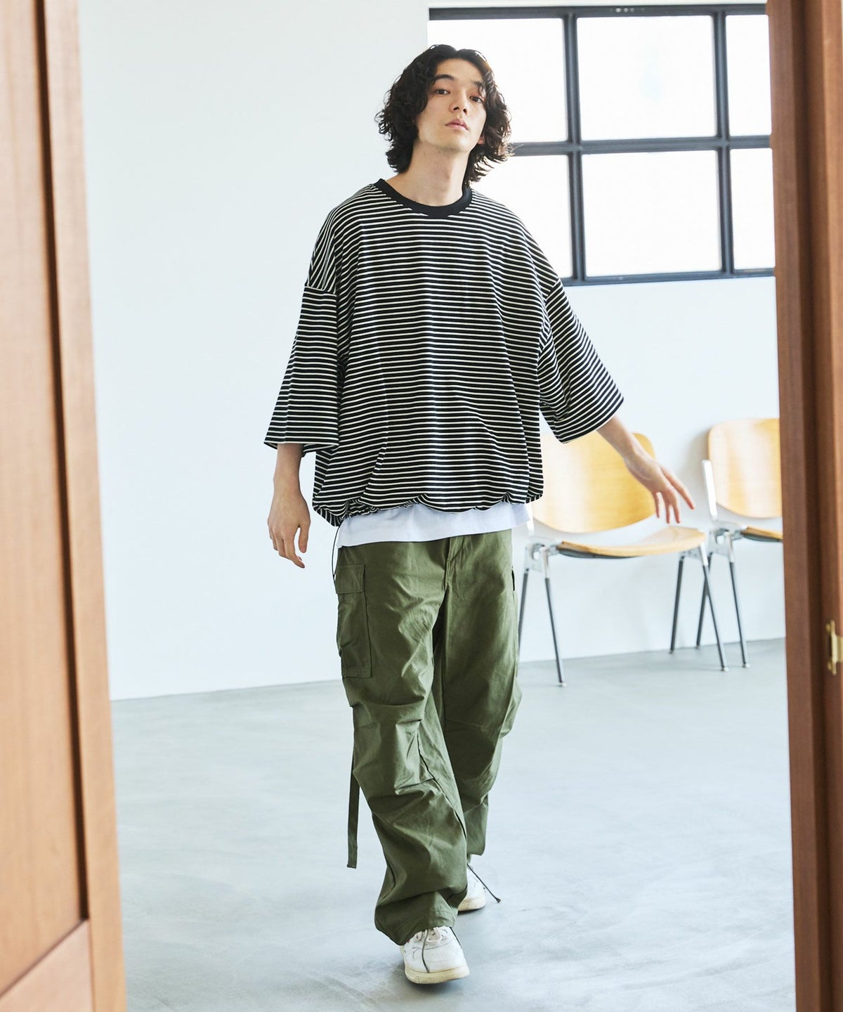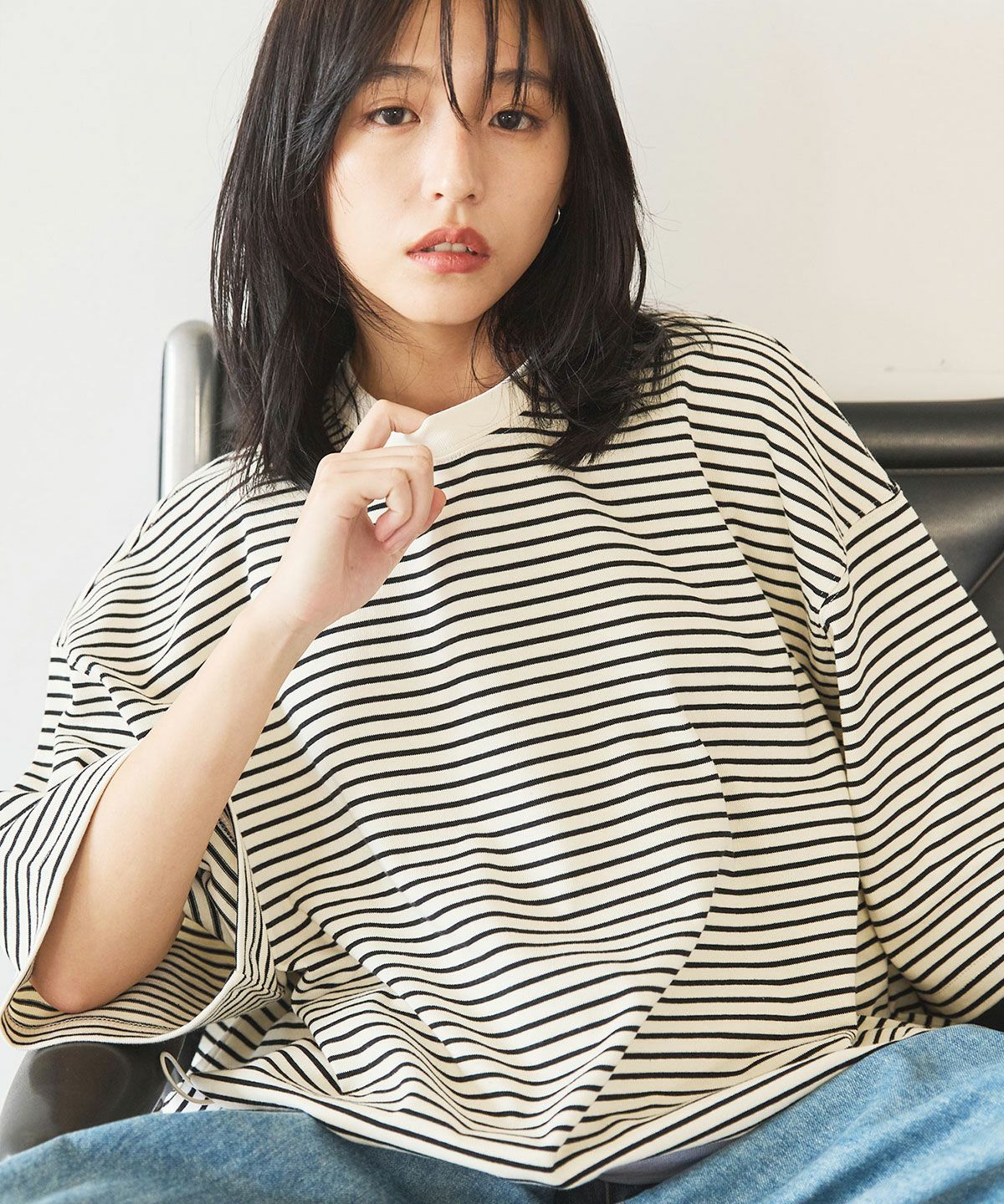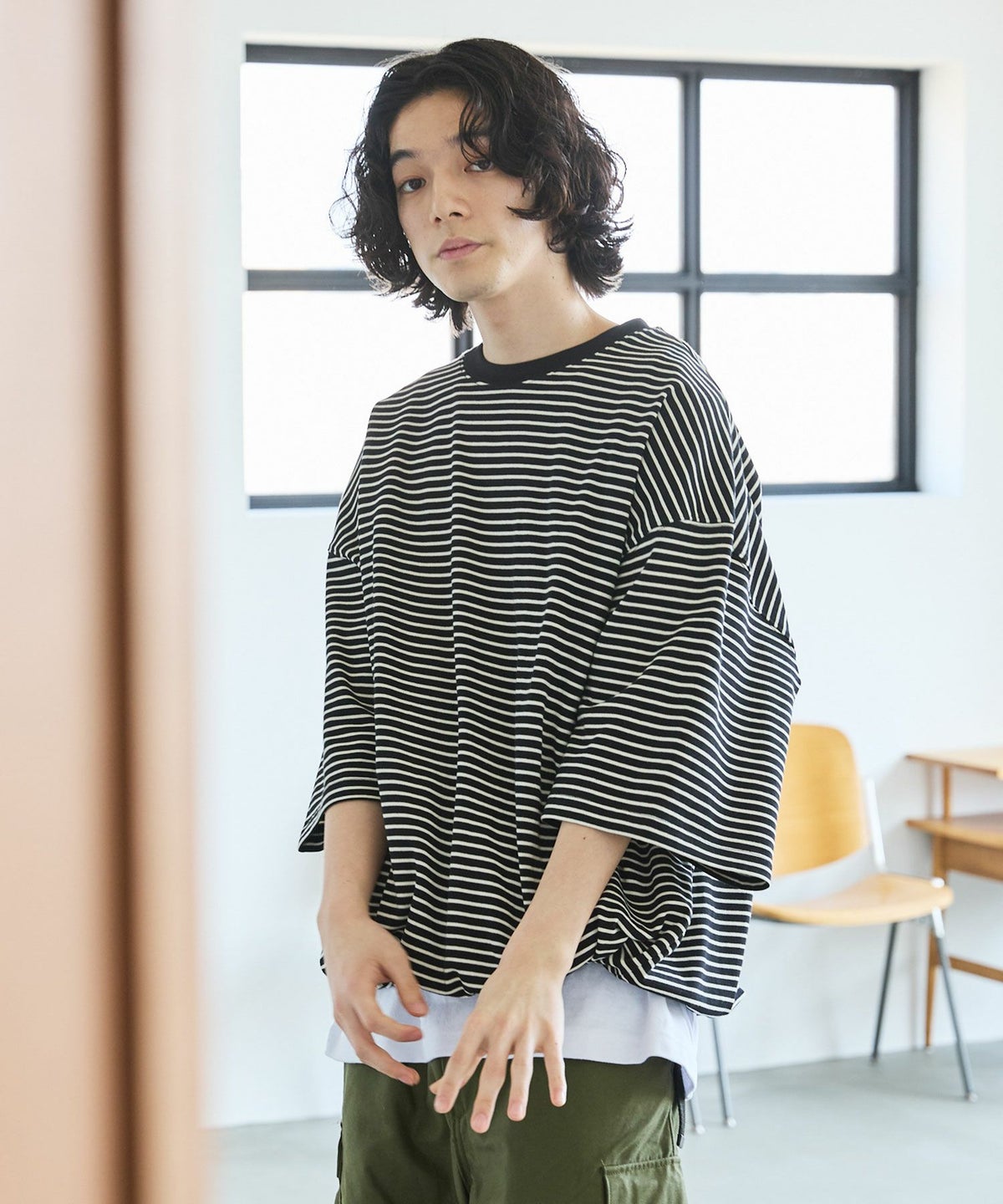 大胆にとったドロップショルダーシルエットで、まさに一枚で決まるカットソーです。