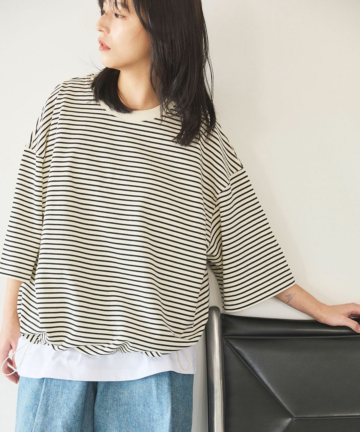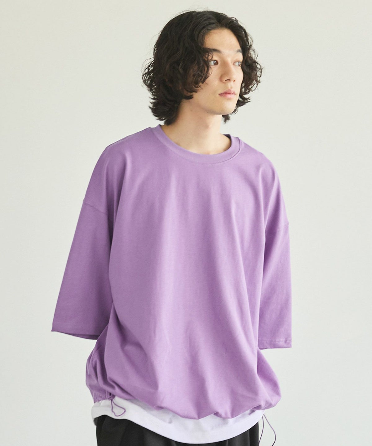 裾ドローコードコットンビッグ5分袖カットソー
