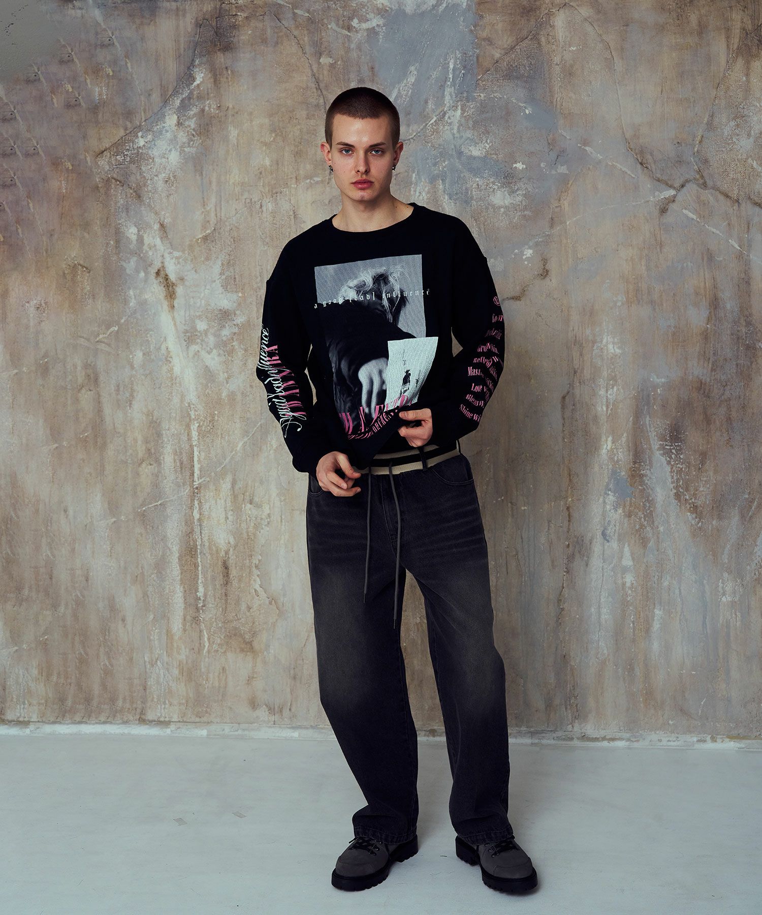 デザイナー自身が影響を受けたアーティストなどをグランジ要素とミックスさせデザインに落とし込んだデザインが特徴で、国内外で多くのアーティストの着用もある新進気鋭のブランドです。