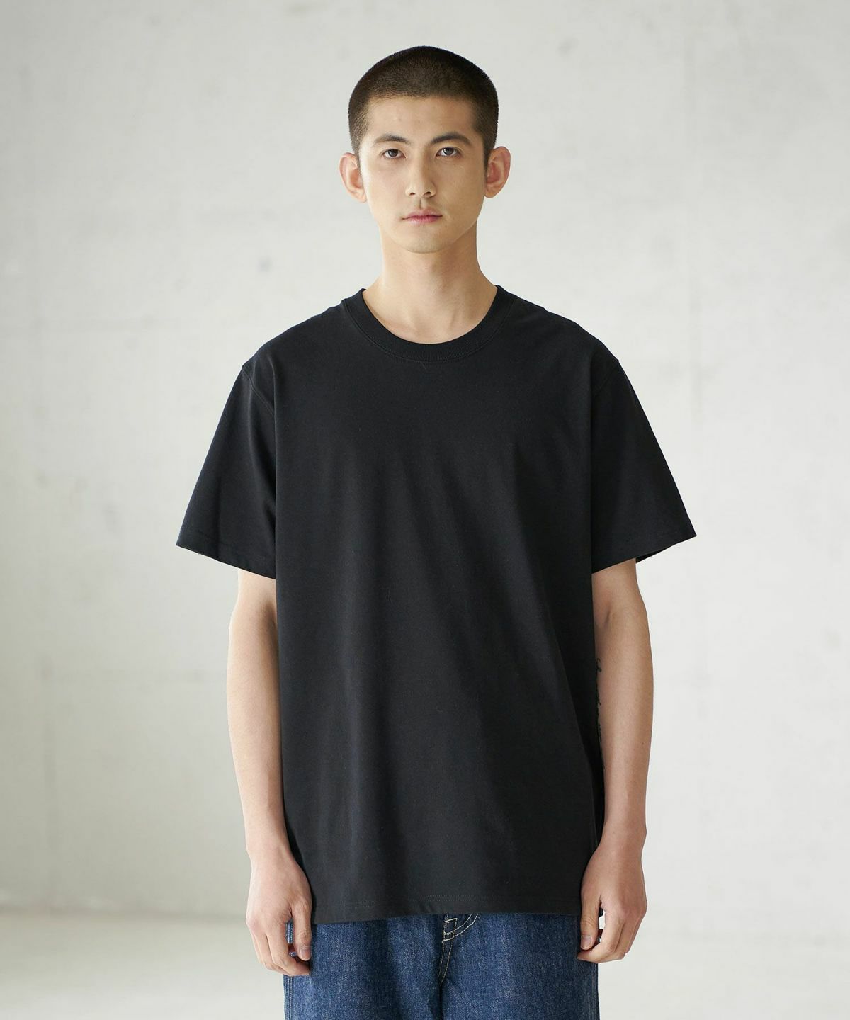 生地感は程よく肉厚で、一枚で着るのも、インナーとして着るにも黄金バランスな7.5オンスの生地を採用。 タフでヘタらない生地を目指しつつ、一枚で着た際に透けない、レイヤードで着用した際にごわつかない様になるバランスで仕上げ、非常に着やすいモデルになっております。