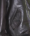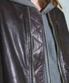 肉厚なレザーとビッグシルエットに負ける事ない特注の大判のジップを採用いたしました。