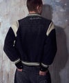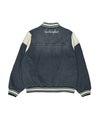 デニムとレザー素材の切り替えデザインが特徴の、トレンドのショート丈ブルゾンです。