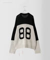 フットボールシャツのようなデザインをニットで表現しております。