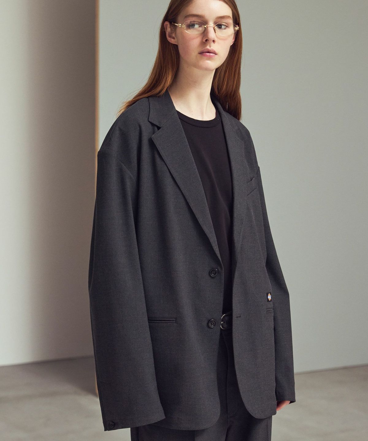 ジャケットはラフな印象ながら、どこか上品でカチッとした空気感のテーラードジャケットデザインを採用。