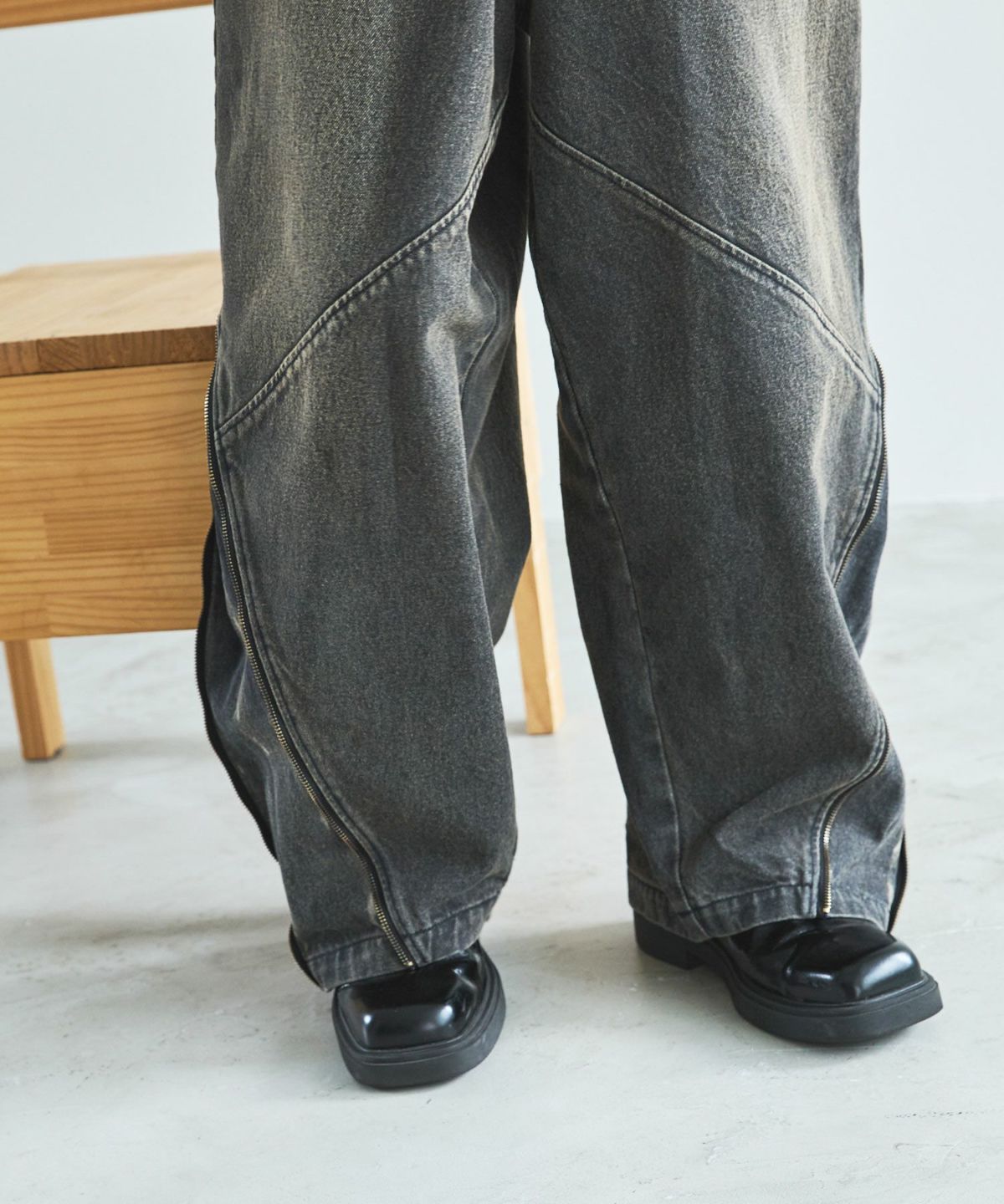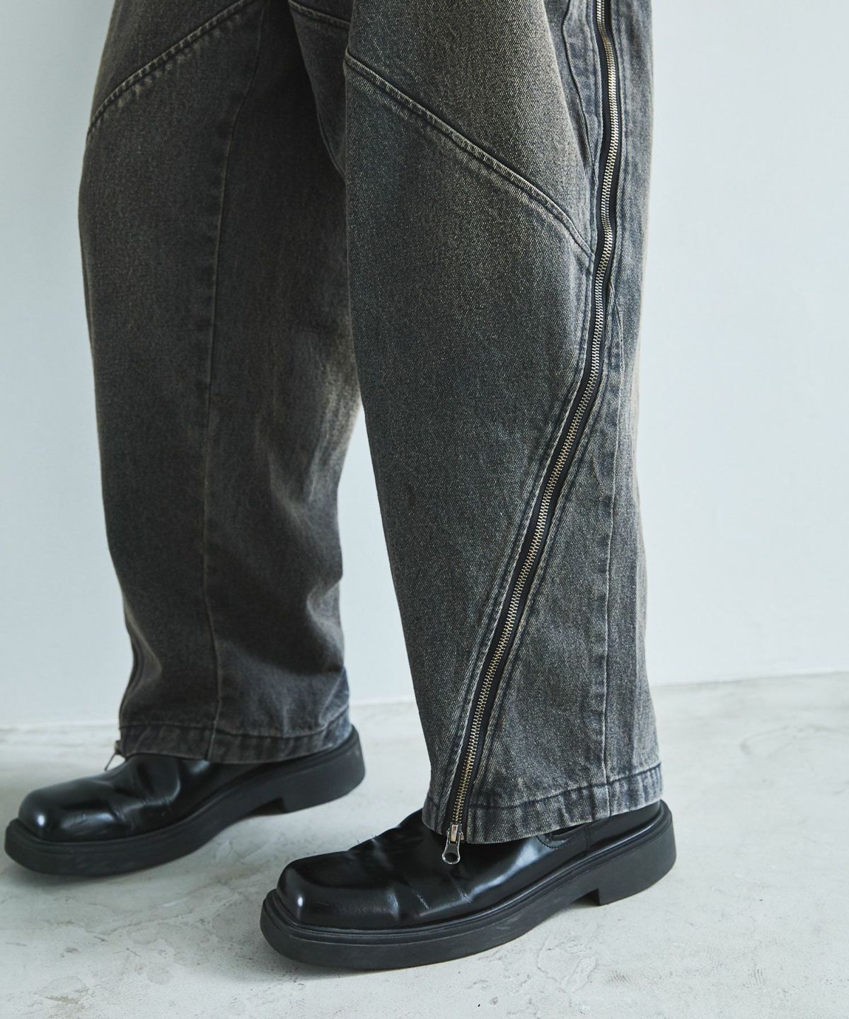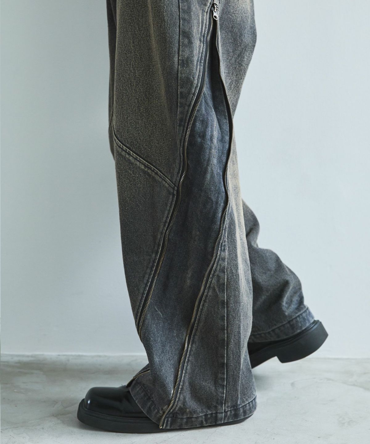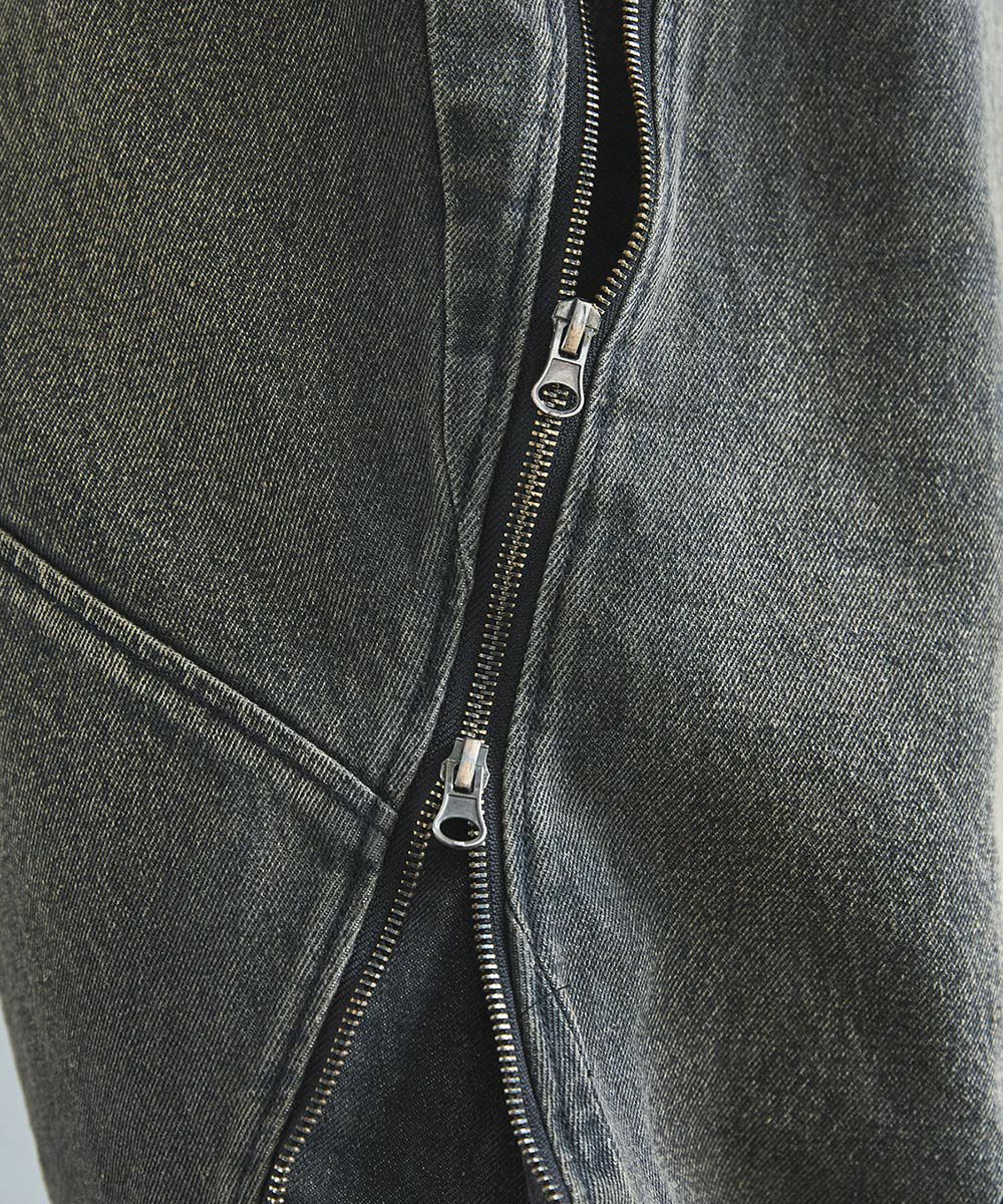 デザインの最大の特徴は特注で作り、デニムの両サイドに施したサイドジップデザイン。