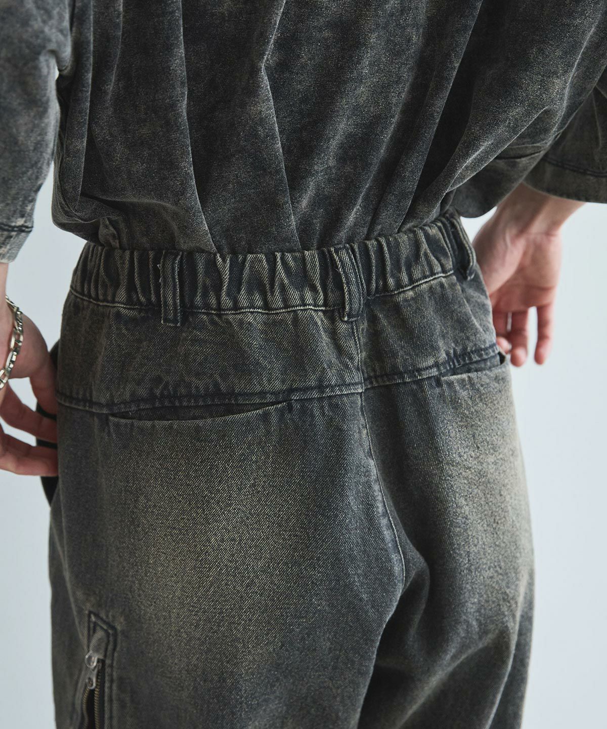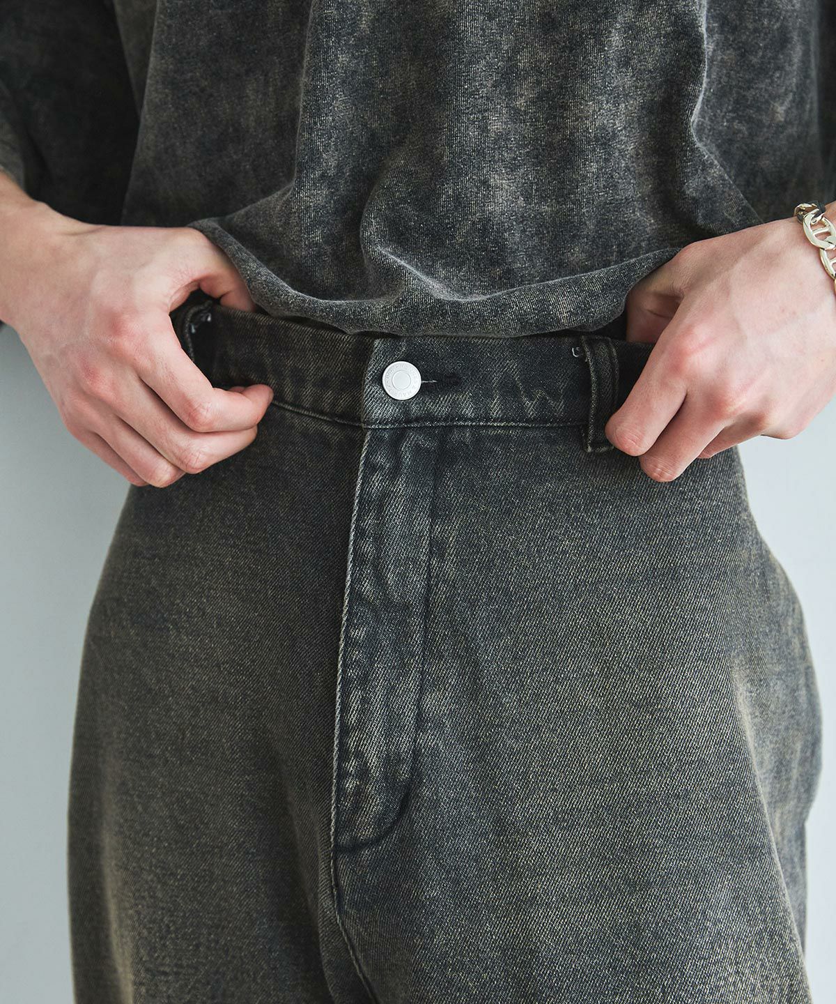 ブラックオーバーダイサイドジップオーバーデニムパンツ