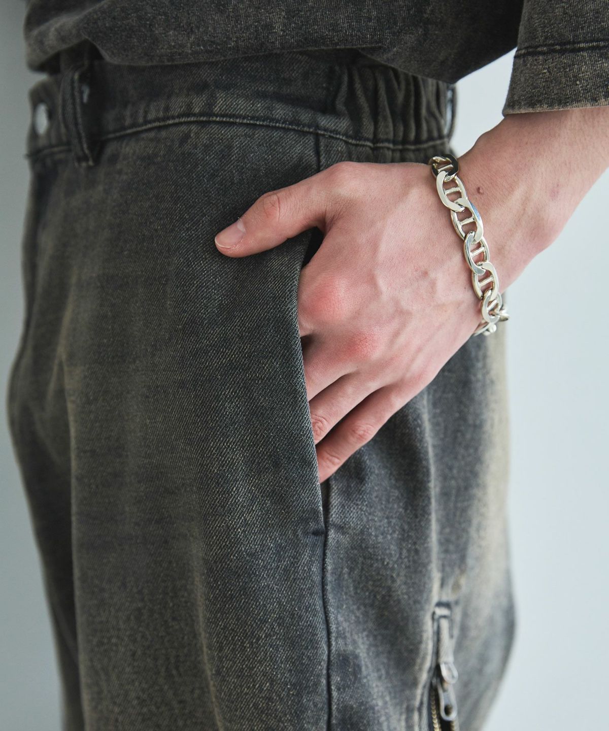 閉めてご着用する際にはバルーンシルエット、ジップを開閉するとバギーパンツとしてご着用がお楽しみ頂ける2WAY仕様になっており、他ブランドにはない存在感を演出した1本です。