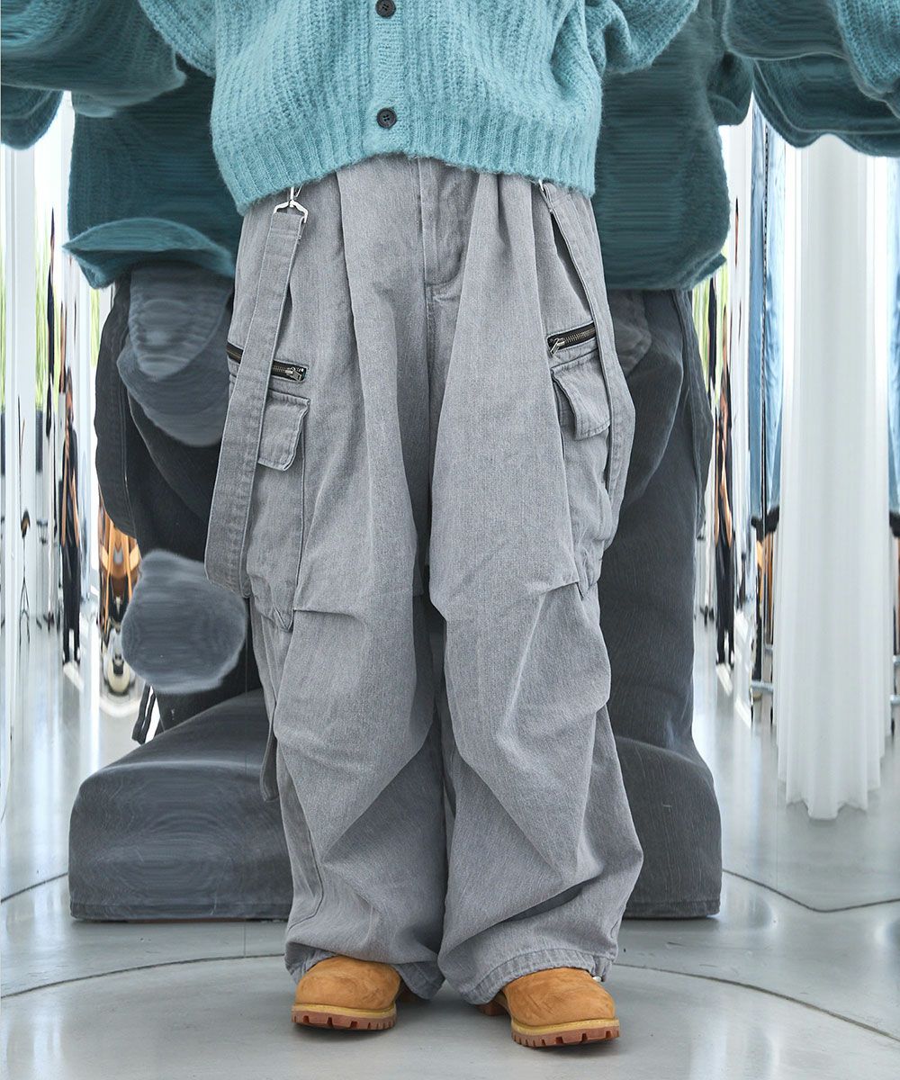 ヴィンテージ加工サスペンダーヘヴィーオンスデニムカーゴパンツ