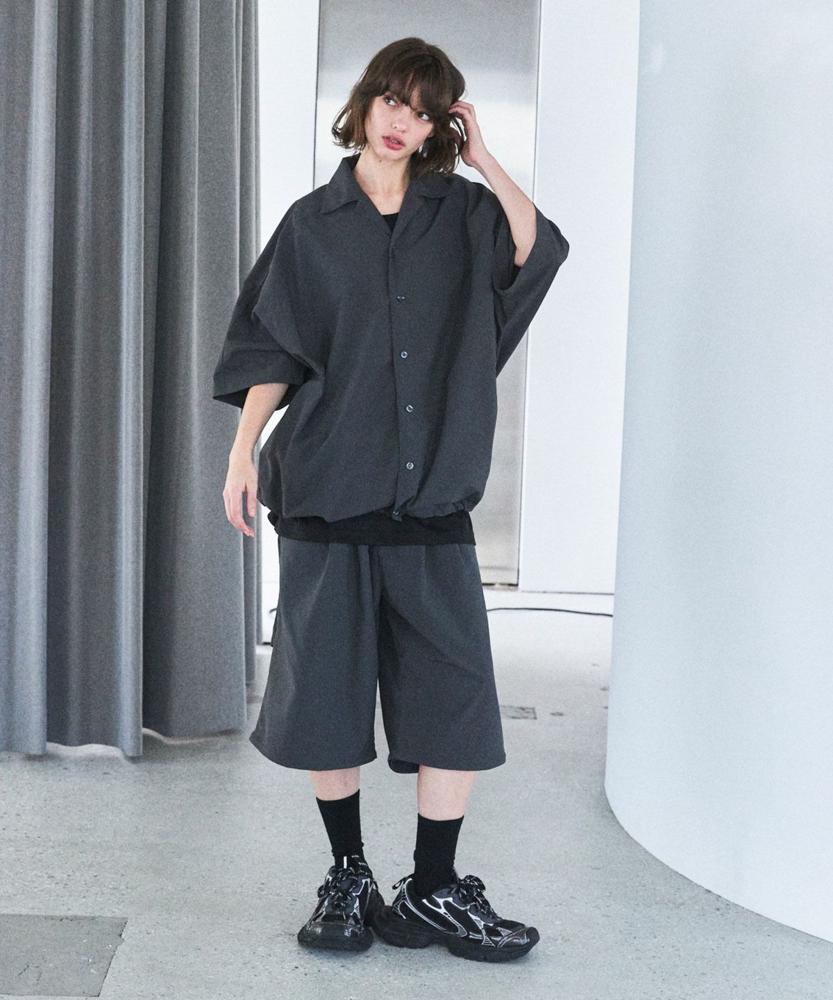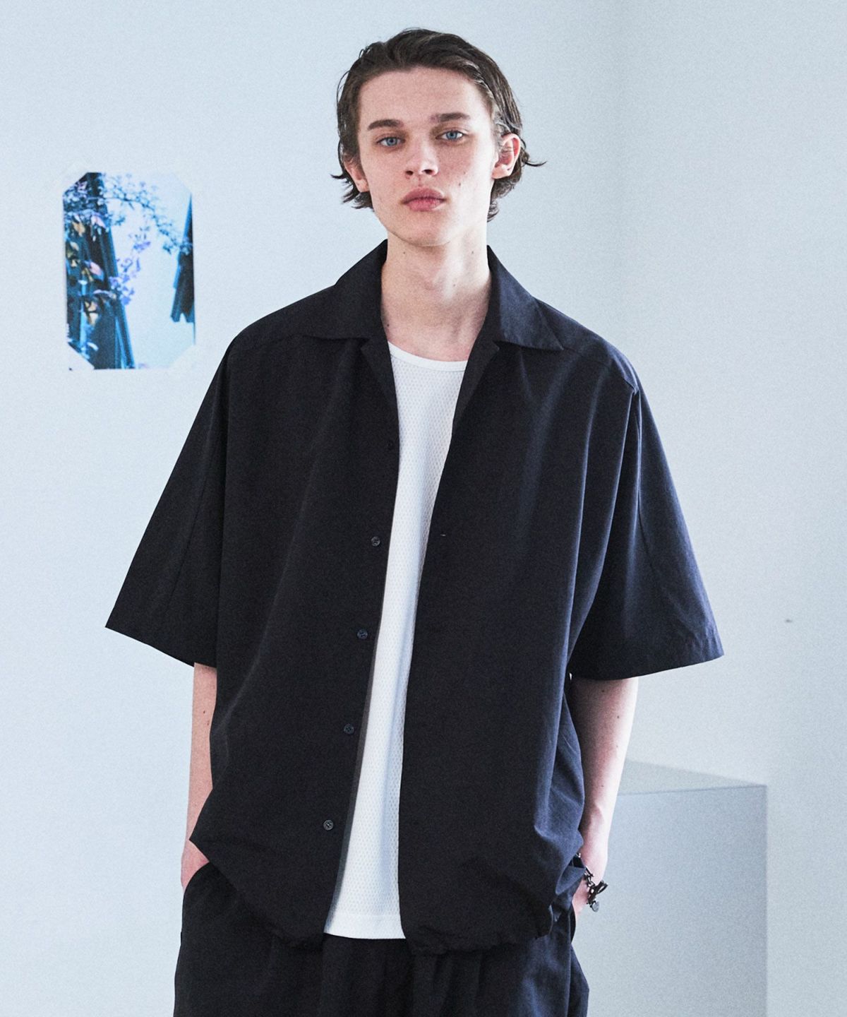 SUPPLEX NYLONドルマンスリーブ裾ドローコードオープンカラーシャツ