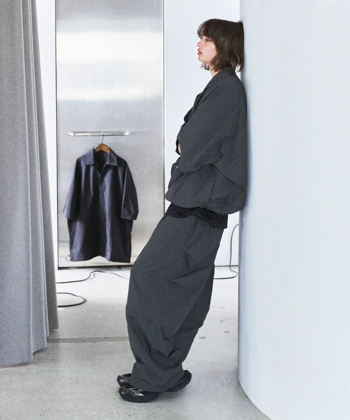 アイテムのデザインは1枚でコーディネートを仕上げてくれるメリハリの効いたビッグシルエット。