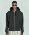 度詰めでUSED感のある国産裏毛素材を使用したショート丈ジップパーカー。