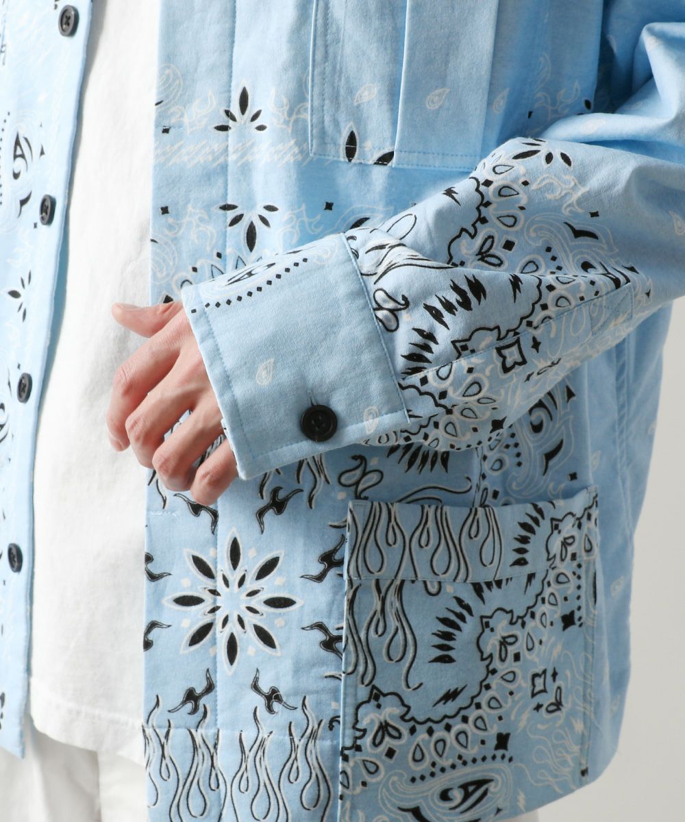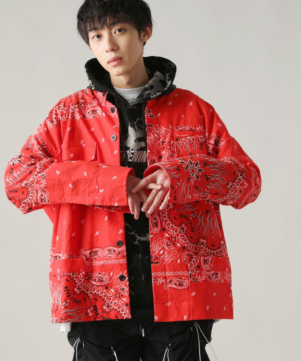 オリジナルの柄で表現されたバンダナ柄はファイヤーパターン要素も含まれたストリートで映えるテキスタイル。