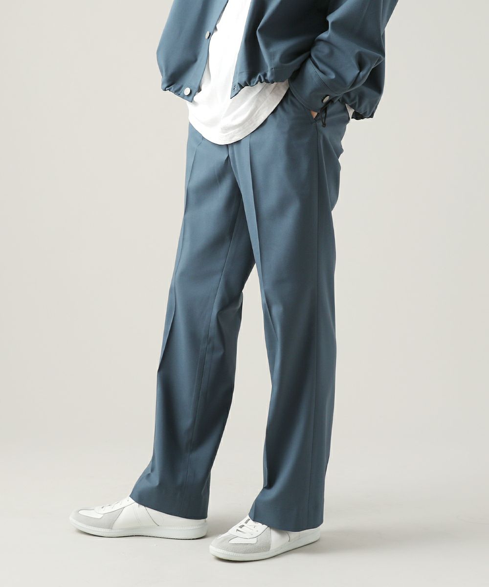 先染めしたポリ/レーヨン生地を使用したスラックス。 清涼感があり、非常に軽くて柔らかい生地で程よいブーツカットシルエットに仕上げました。 ストレッチも利いており、ストレスを感じさせない仕上がりとなっております。 ベーシックなデザインなので、トップスを選ばない使い回しの利くアイテムとなっております。 トラッカージャケットとのセットアップとしてもお使い頂けます。 ※モデル着用 L ※モデル身長 185cm
