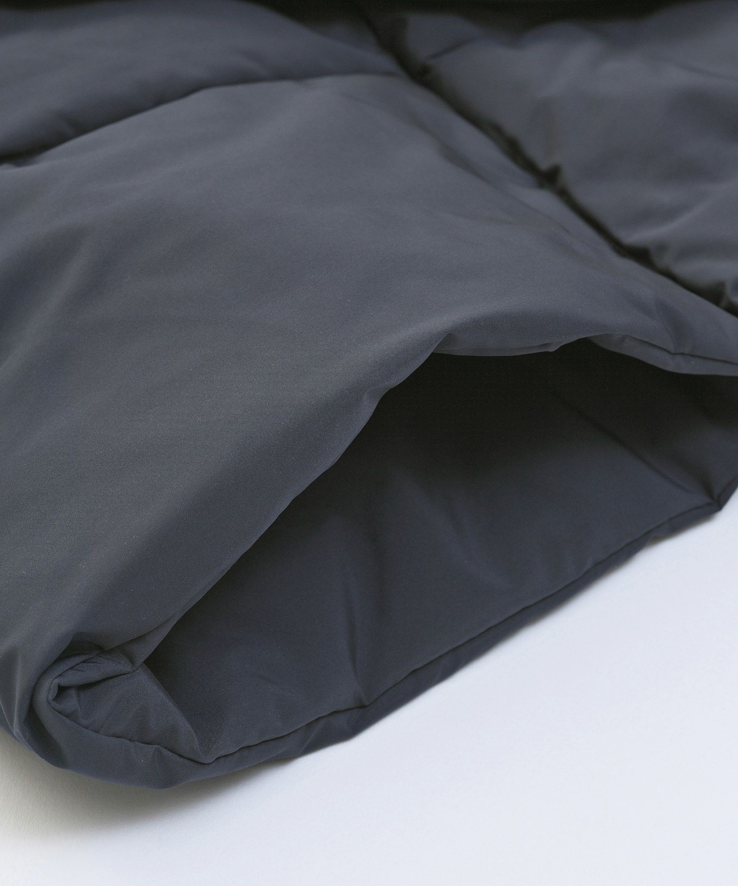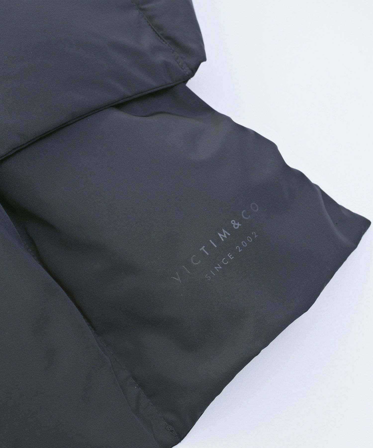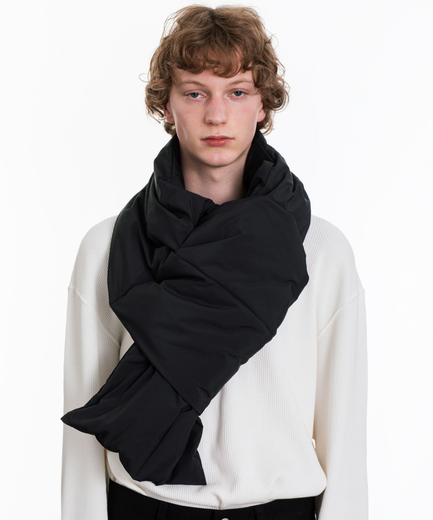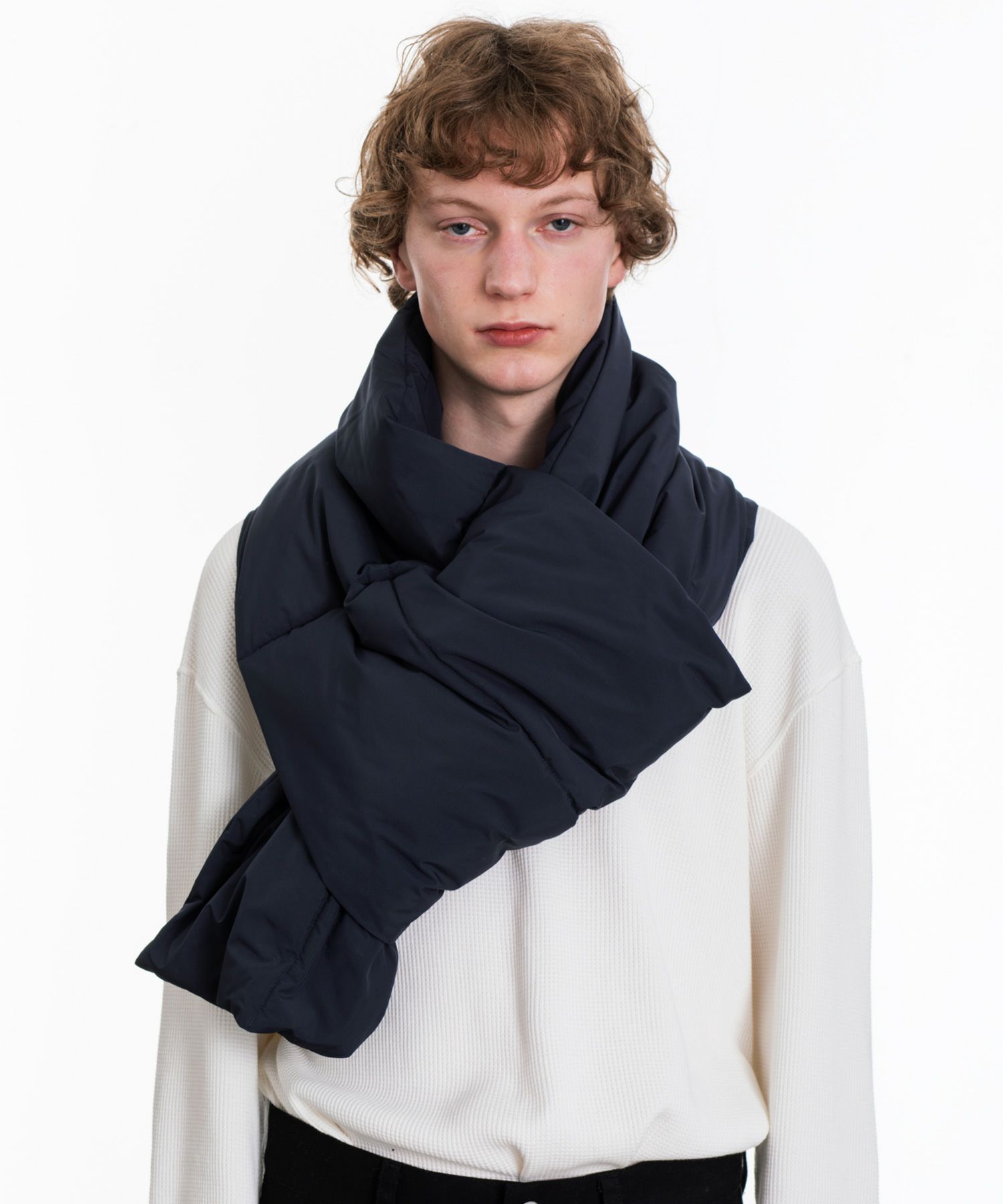 高密度に織ったリサイクルタフタ生地を使用したマフラー。 リサイクル糸で高密度に織ったタフタ生地は、ナイロン特有の程よい光沢感と、防風性を持ち、撥水、保温性、蒸れにくい透湿性に優れた生地となっております。 そちらにフェイクダウンを入れて、非常に軽量でふっくらと仕上げております。全てのコーディネートに合わせてお使いいただきたいです。 同素材のPADDING COAT、PADDING JACKETとの組み合わせもオススメです。
