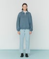 膨らみがあり、肌触りの優しい裏毛ハーフジップスウェット。 表面はすっきりした見た目の生地で上品なルックスに仕上がっています。 身幅は残しつつ、ショート丈仕様のトレンドシルエット。 ボリュームのあるフードも特徴。袖は前振袖パターンを採用し、立体感が出るシルエットに変更。