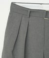 上品なルックスながら家庭でのケアも簡単なイージーケア仕様のバギースラックス。 撥水と速乾性のあるル強撚ポリエステル素材を採用しております。 同素材のベルト付きで、ウエスト周りに変化を与えてくれる1本です。